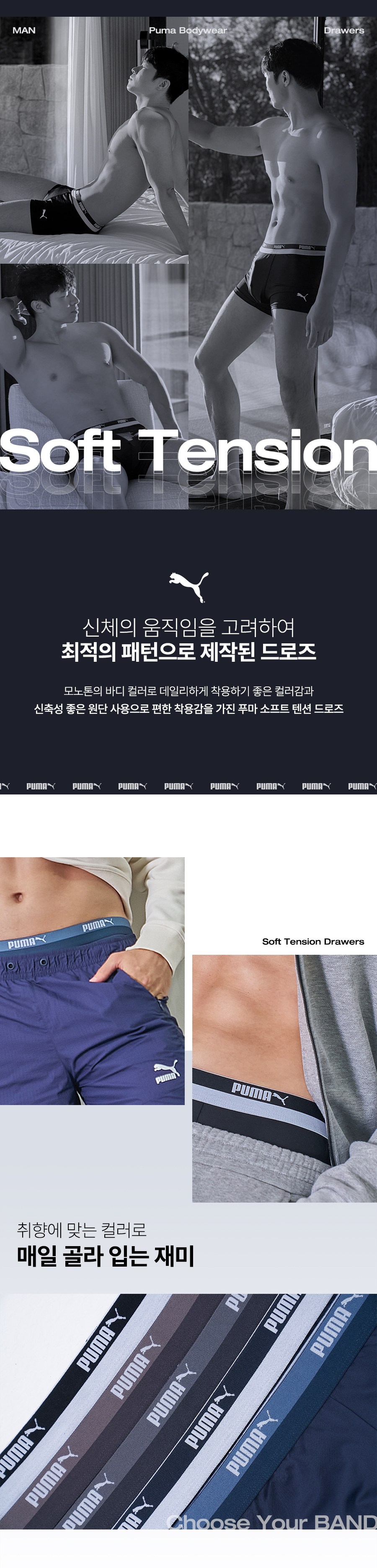 PUMA Soft Tension完美貼合四角褲,採用吸濕快乾的Dry-cell布料,讓您在運動或日常活動中保持乾爽舒適。前中心立體剪裁與後片一體式設計,提供極佳的貼合感,如同量身打造。布料不重疊的無縫平針縫製,減少異物感,提升穿著舒適度。適合對內衣縫線敏感、長時間久坐或容易流汗的男性。選擇PUMA Soft Tension,享受無拘束的舒適體驗。