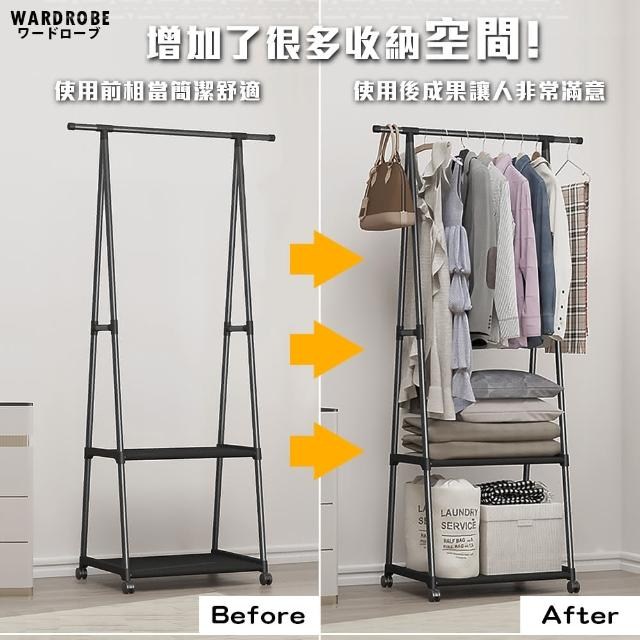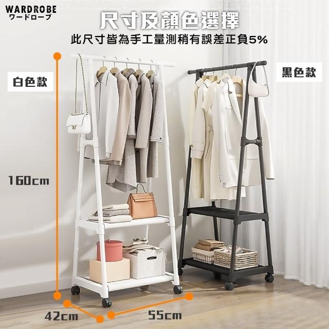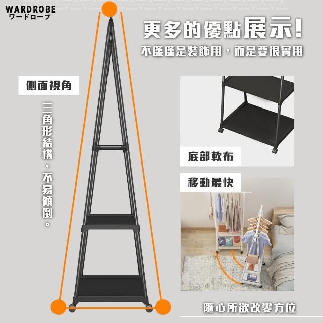 這款三角衣帽架,尺寸為55 x 42 x 160公分,採用堅固的金屬材質製成,結構穩固不易傾倒。黑色外觀簡約時尚,能輕鬆融入各種居家風格。配備兩個層架,提供額外的收納空間,方便放置衣物、包包或其他物品。底部附有四個可旋轉且可鎖定的輪子,移動方便,讓您隨時調整擺放位置。這款衣帽架不僅實用,更能提升您的生活品質。