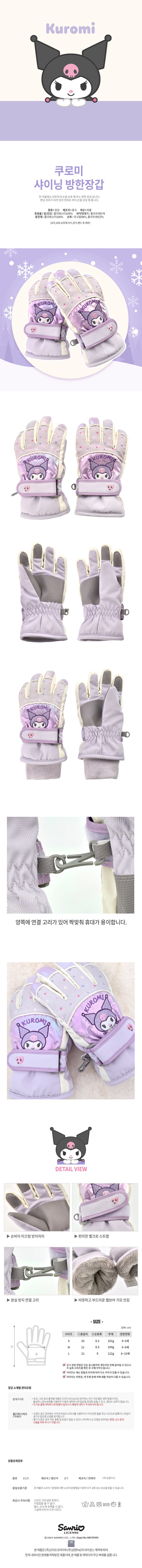 Sanrio 酷洛米閃亮防寒手套是冬季必備的兒童配件。這款手套採用柔軟的絲絨刷毛內裡,即使在寒冷的冬天也能溫暖保護孩子的小手。手套具有防滑手掌設計,增加抓握力,讓孩子玩耍時更安全。此外,手套兩側有連接扣,方便配對攜帶,防止遺失。鬆緊帶設計能有效阻擋寒風,魔鬼氈束帶則提供更佳的舒適度與貼合感,是兼具保暖與實用性的最佳選擇。