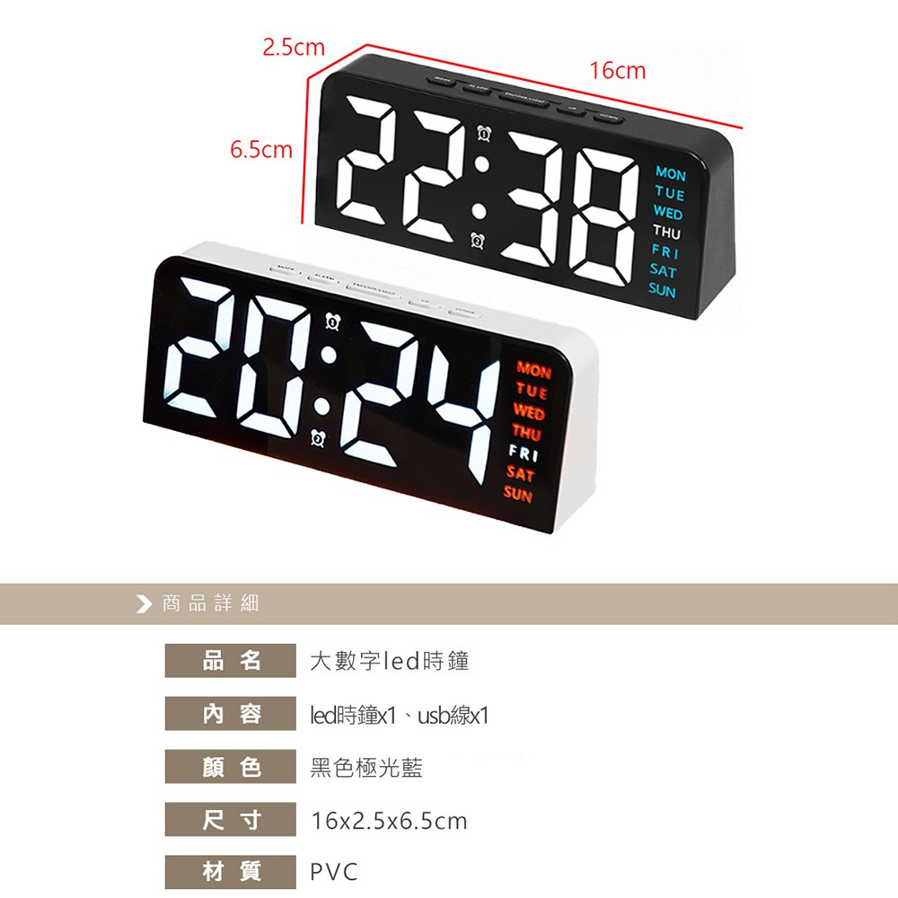 這款上手家居大數字LED電子鐘,採用簡約時尚的設計,能完美融入各種居家風格。大數字顯示清晰易讀,方便長輩或視力不佳者使用。黑色外觀搭配極光藍光,營造出獨特氛圍,為生活增添一絲色彩。具備鬧鐘功能,輕鬆設定每日提醒,讓您不再錯過重要時刻。無論是放置於桌面或床頭櫃,都能隨時查看時間,方便又實用。