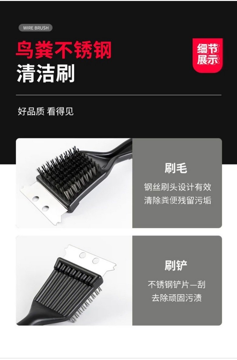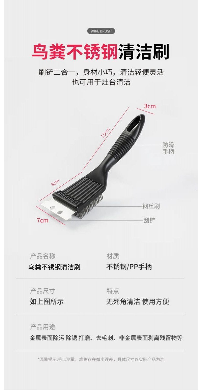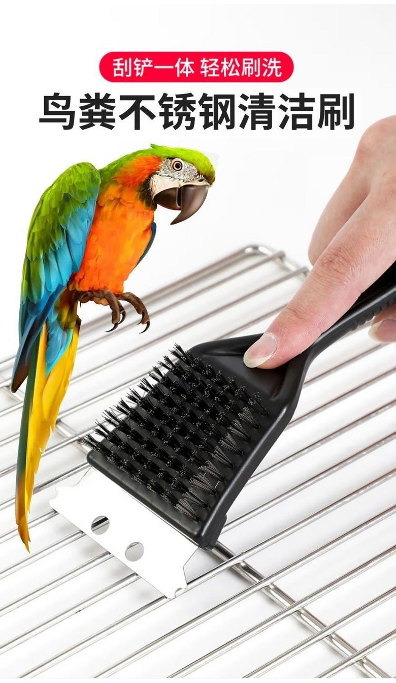 不鏽鋼鳥籠清潔刷 鏟子鋼絲刷雙用 清潔鳥糞 寵物鳥籠清潔工具, 1個