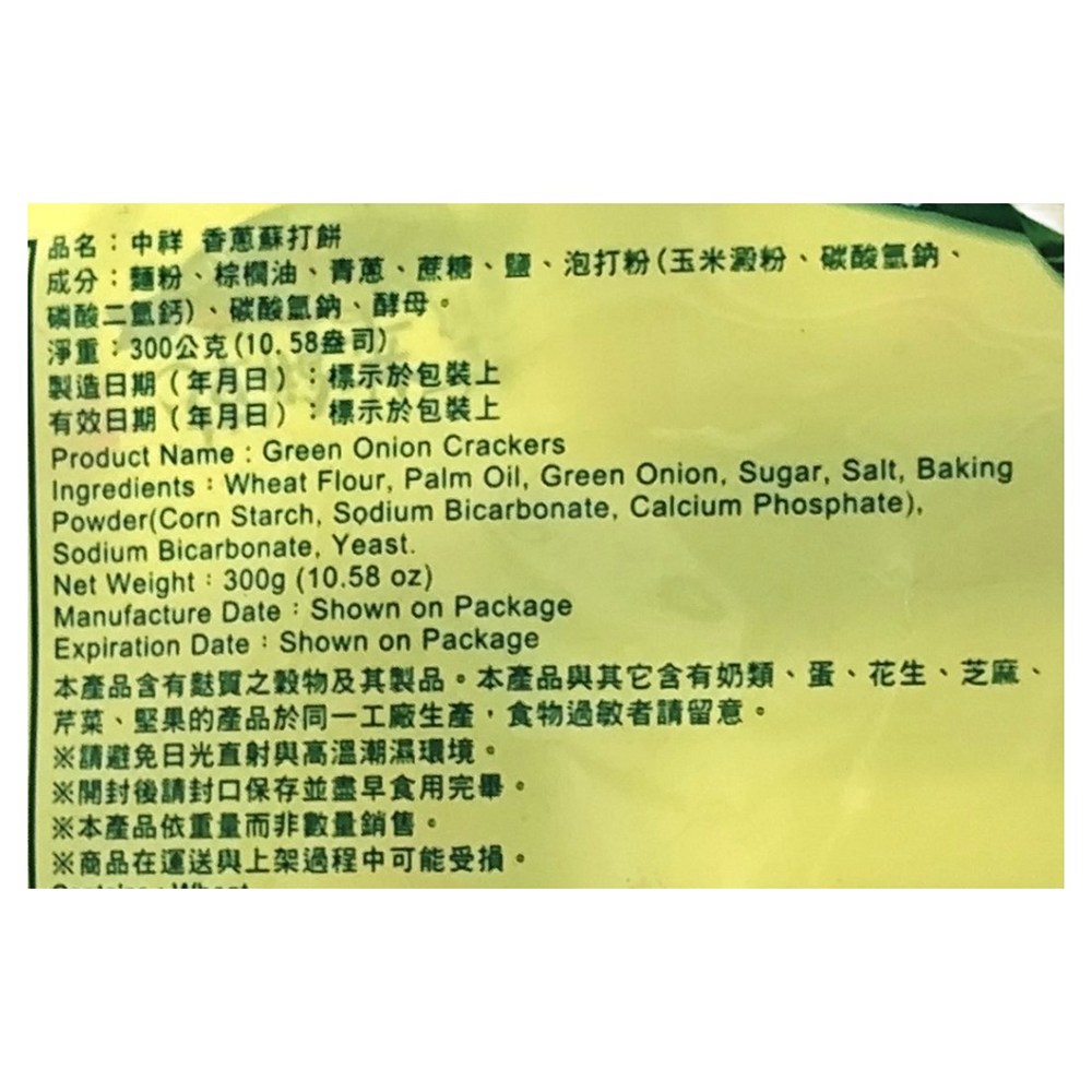 中祥香蔥蘇打餅是一款經典的台灣零食,以其獨特的香蔥風味和酥脆的口感而聞名,不含人工添加物,健康又安心。獨立小包裝設計,方便攜帶,隨時隨地都能享受美味。無論是搭配茶飲或咖啡,都是絕佳的選擇,讓您在忙碌的生活中也能享受片刻的悠閒。香蔥蘇打餅口感酥脆,老少咸宜,是全家人都喜愛的美味零食。