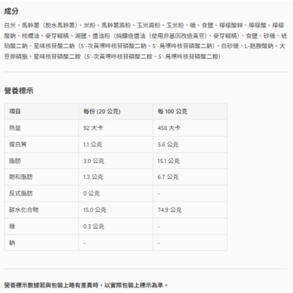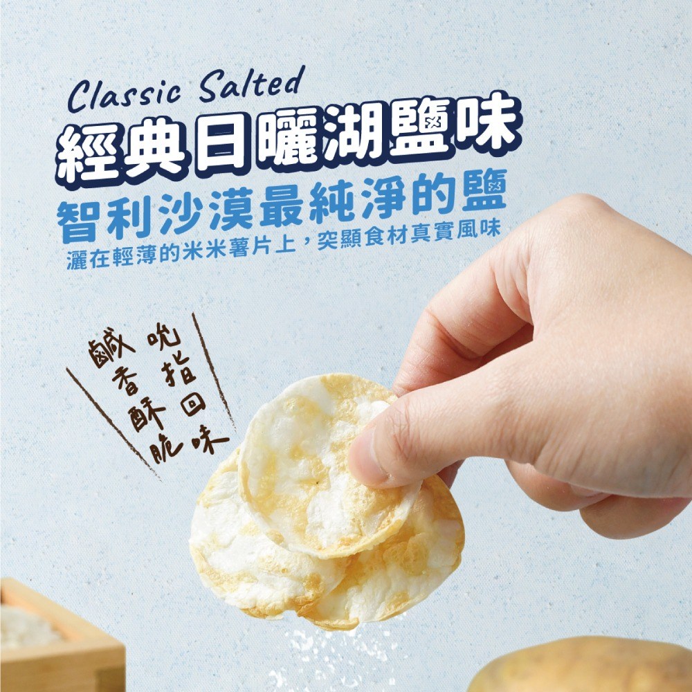 - 經典湖鹽口味,鹹香適中,完美襯托馬鈴薯與米香的自然風味,令人回味無窮。