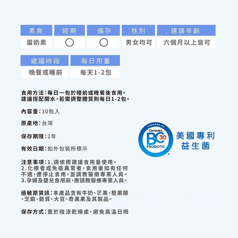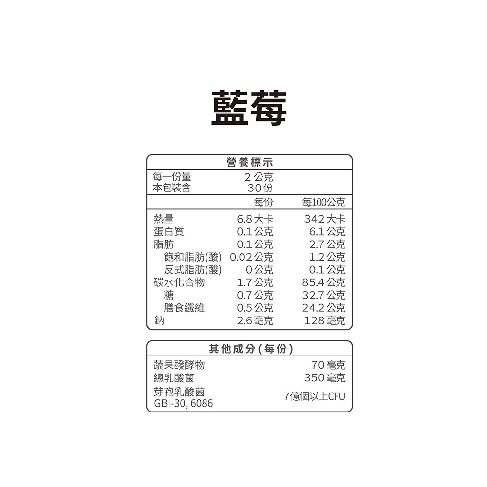 - - 藍莓口味益生菌,口感清新自然,讓您享受美味的同時,輕鬆補充每日所需的好菌。