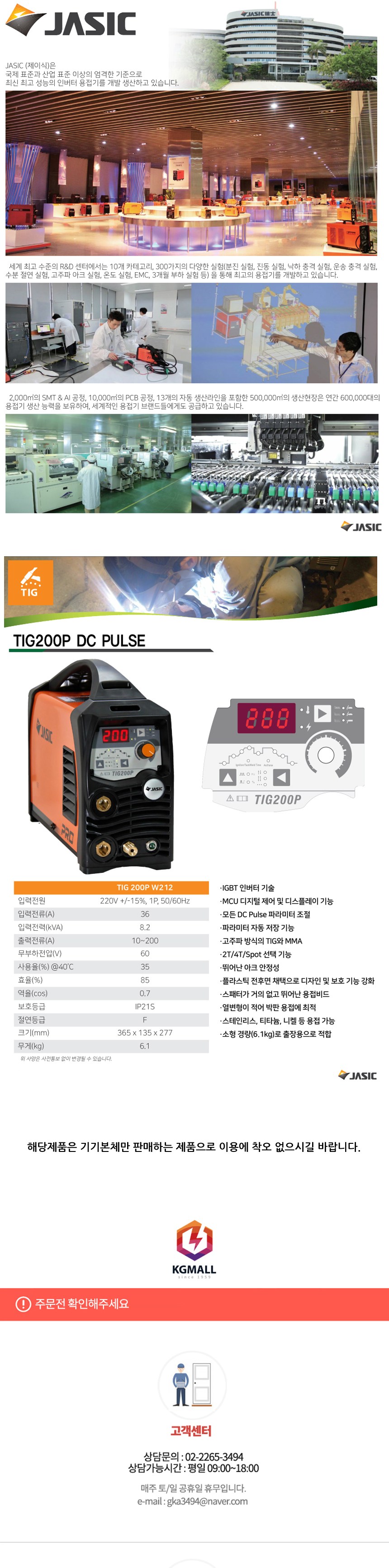 佳士擁有 2,000 平方公尺的 SMT & AI 生產線、10,000 平方公尺的 PCB 生產線,以及包含 13 條自動化生產線在內的 500,000 平方公尺的生產基地,年產能達 600,000 台,產品更供應給全球各大焊機品牌。TIG200P DC PULSE 是一款採用 IGBT 變頻技術的直流脈衝氬焊機,數位控制,性能穩定,焊接品質佳。適用於不鏽鋼、鈦合金、鎳合金等多種金屬材質。產品特點:IGBT 變頻技術、MCU 數位控制和顯示功能、所有直流脈衝參數可調、參數自動儲存功能、高頻 TIG 和 MMA 功能、2T/4T/點焊功能選擇、出色的電弧穩定性、前後塑膠面板設計,提升設計感和保護功能、飛濺極少,焊縫美觀、熱變形小,適合薄板焊接、適用於不鏽鋼、鈦合金、鎳合金等多種金屬材質、體積小巧 (6.1kg),方便攜帶。