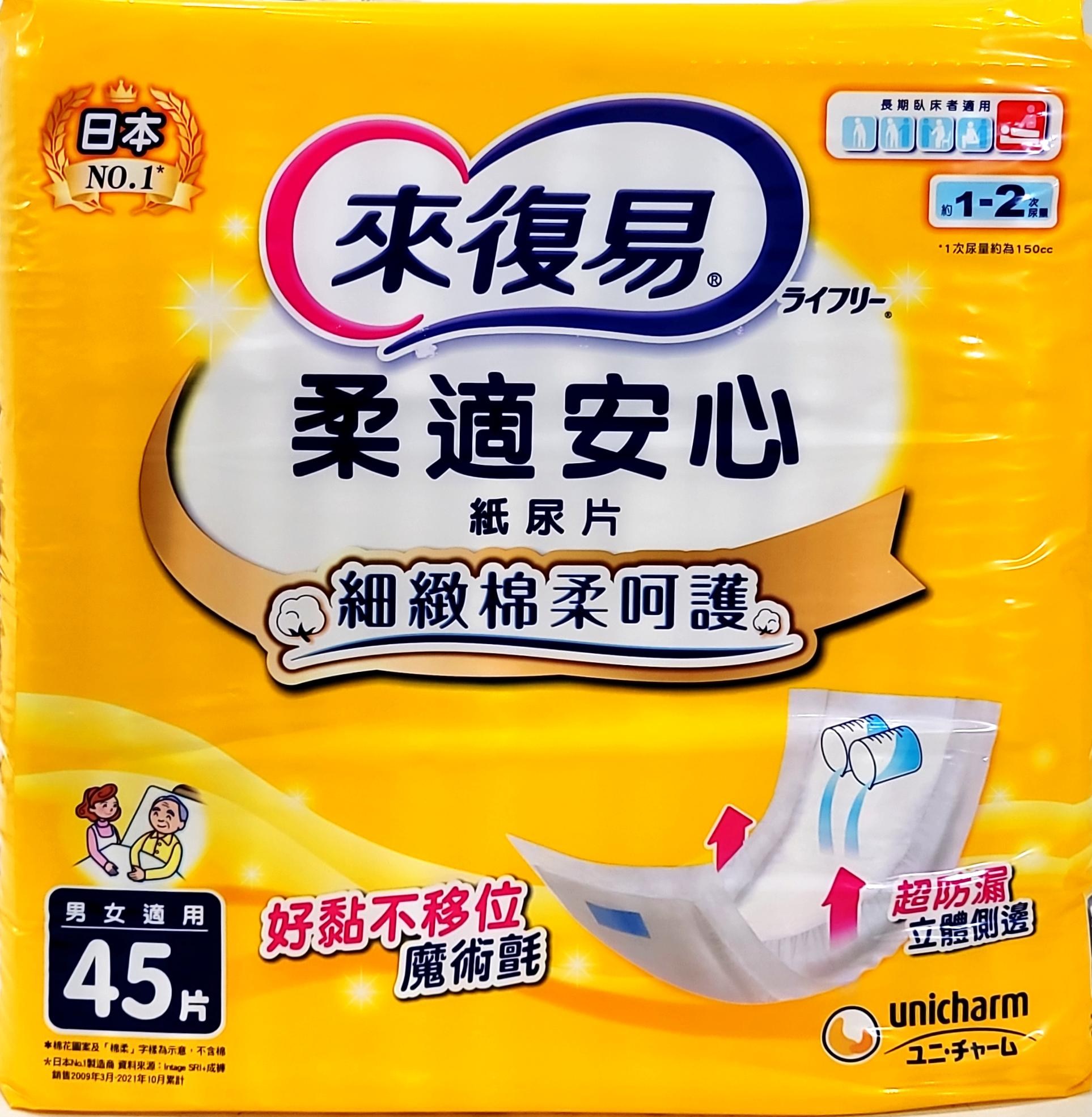 來復易柔適安心尿片,箱裝包含6包,每包45片,為您提供長效且安心的呵護。此款尿片採用透氣材質,男女通用,尺寸為49 x 22.5公分,穿脫式設計方便更換,特別適合行動不便或長期臥床者使用。細緻棉柔呵護,減少摩擦肌膚的不適,超防漏立體側邊有效阻擋尿液外漏,乾爽瞬吸層迅速吸收,保持肌膚乾爽舒適。選擇來復易,給您最體貼的照護,讓您安心無憂。