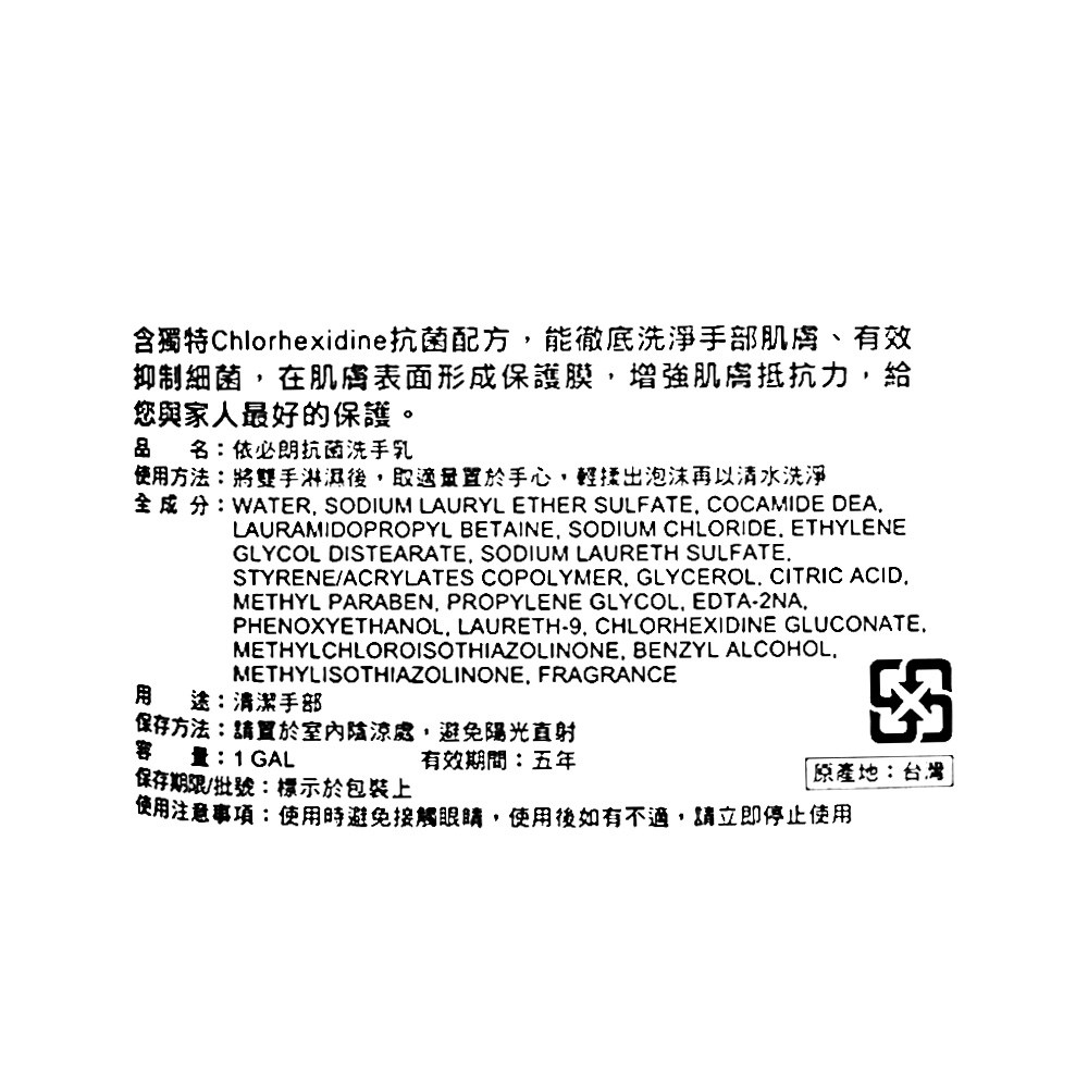 依必朗抗菌洗手乳,3785ml大容量裝,能有效抑制細菌滋生,溫和清潔雙手,同時在皮膚表面形成保護膜。液體型態洗手乳,使用方便。大容量補充包設計,經濟實惠,適合家庭或辦公場所使用。選擇依必朗,給您和家人最安心的呵護。
