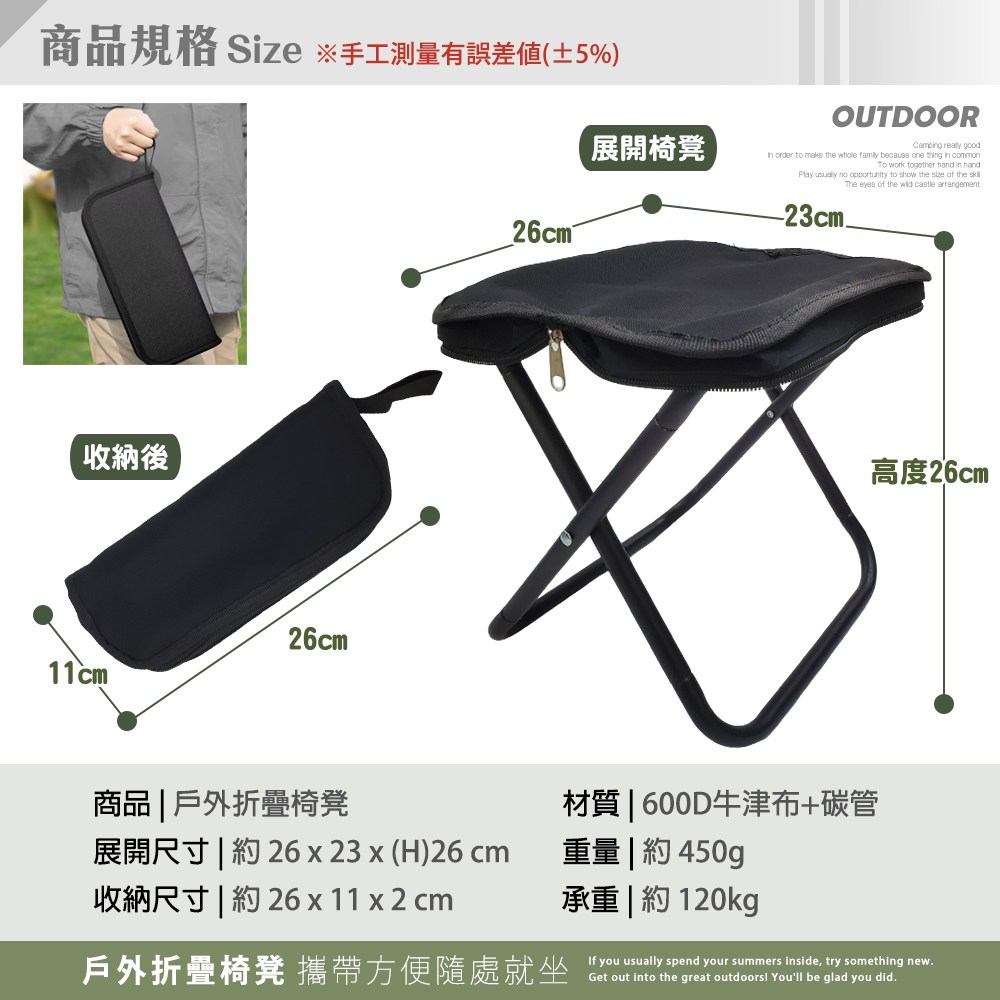 - 迷你尺寸,不佔空間,輕鬆放入背包或口袋,隨時展開,立即擁有舒適座位。