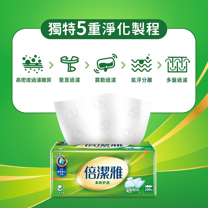 倍潔雅抽取式衛生紙,箱裝包含10袋,每袋8包,每包100抽,為您提供長效且方便的家庭用紙解決方案。這款衛生紙採用獨特細柔蝶紋技術,紙張強韌且柔軟吸水,給您帶來舒適的使用體驗,確保紙張來自於永續管理的驗證林木,創造生態永續平衡。產品經過多重淨化製程,不含螢光劑及有害化學物質,使用安心無慮。無論是日常清潔還是呵護肌膚,倍潔雅抽取式衛生紙都是您值得信賴的選擇。