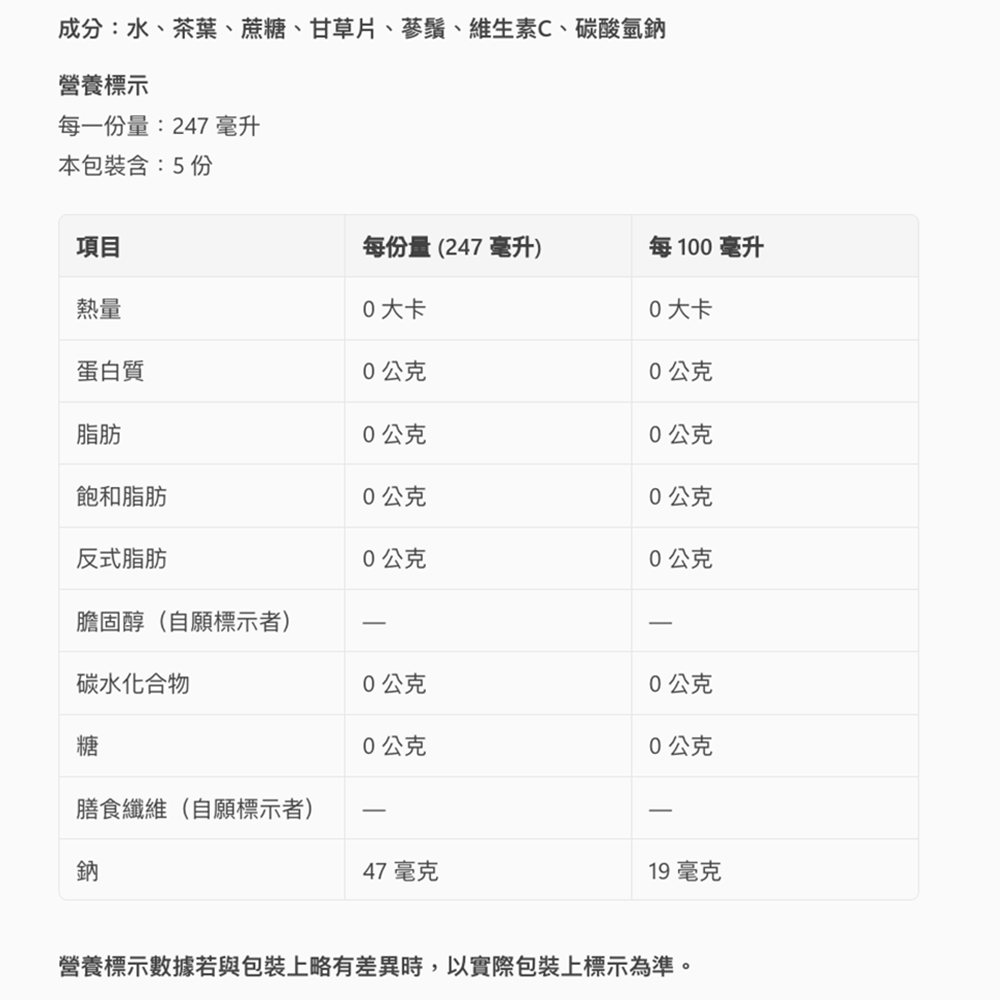 - - 無糖配方,健康無負擔,隨時享受清爽解渴的暢快,適合注重健康的您。