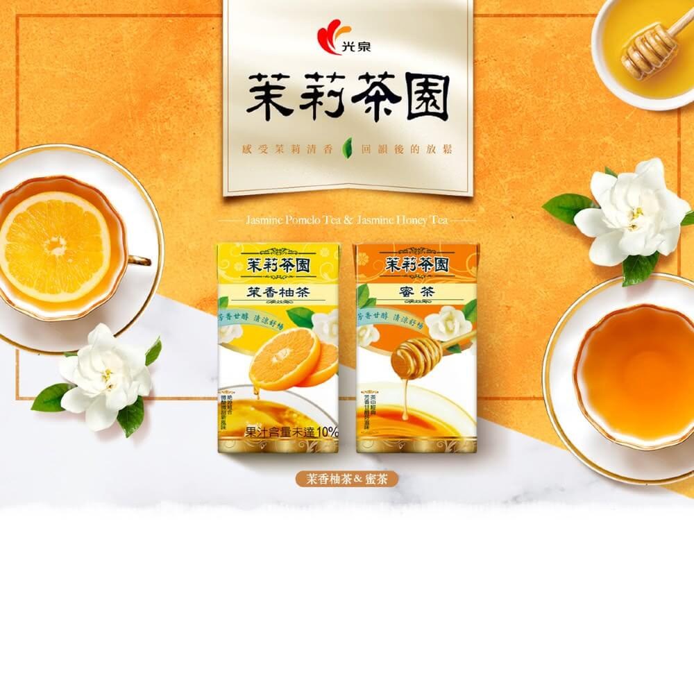 - 光泉茉莉茶園蜜茶,入口清甜,尾韻帶有淡淡茉莉花香,讓您隨時享受清新好滋味。