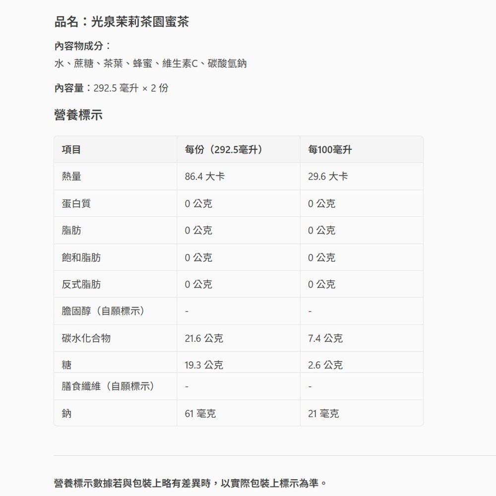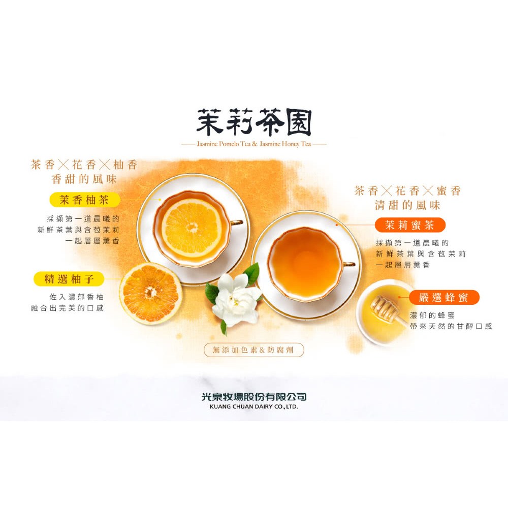 - 嚴選真實茶葉,搭配香甜蜂蜜,光泉茉莉蜜茶帶來多層次的味蕾享受,解渴又滿足。