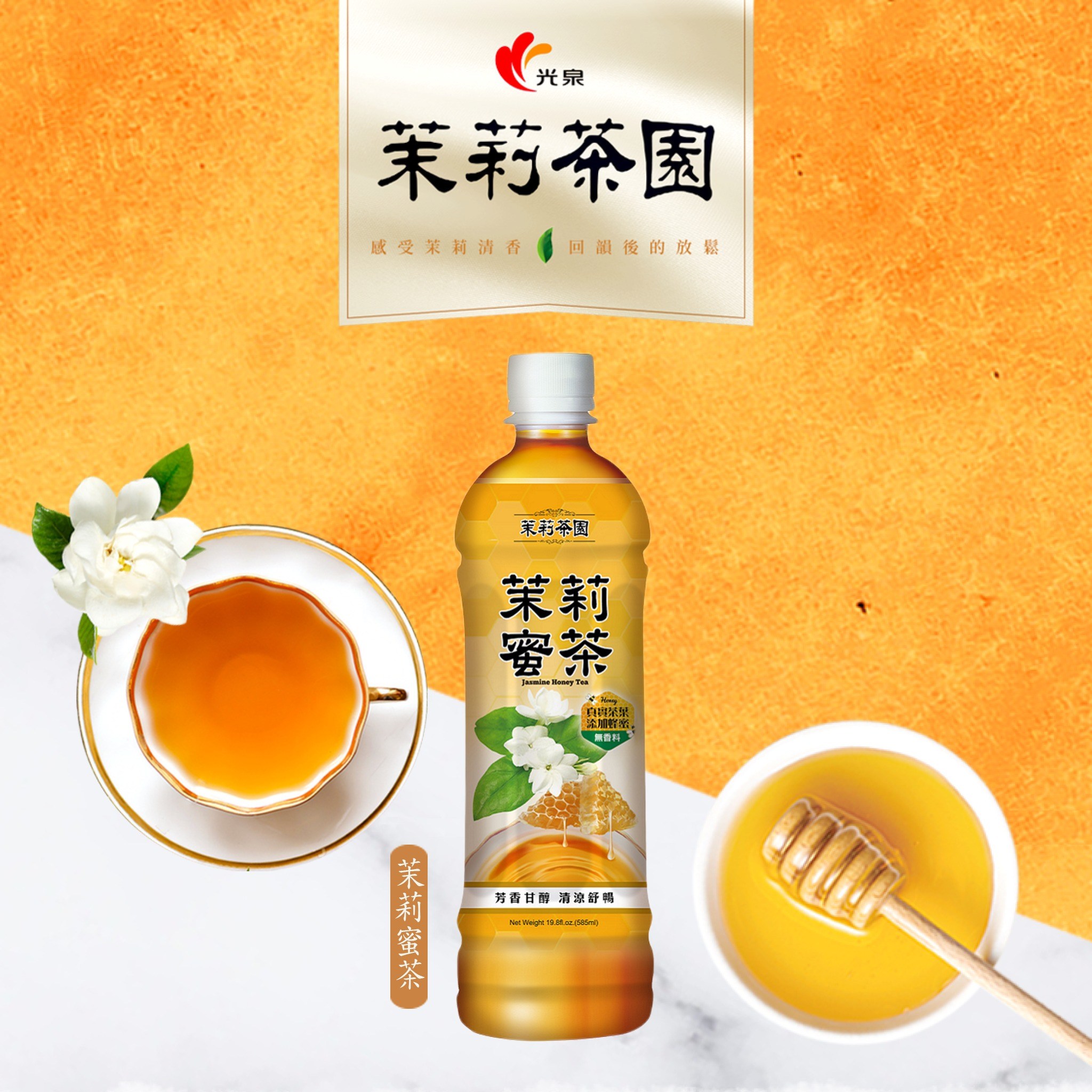 - 蜜茶口感滑順,甜度適中,光泉茉莉蜜茶讓您在忙碌生活中,隨時享受片刻的寧靜。