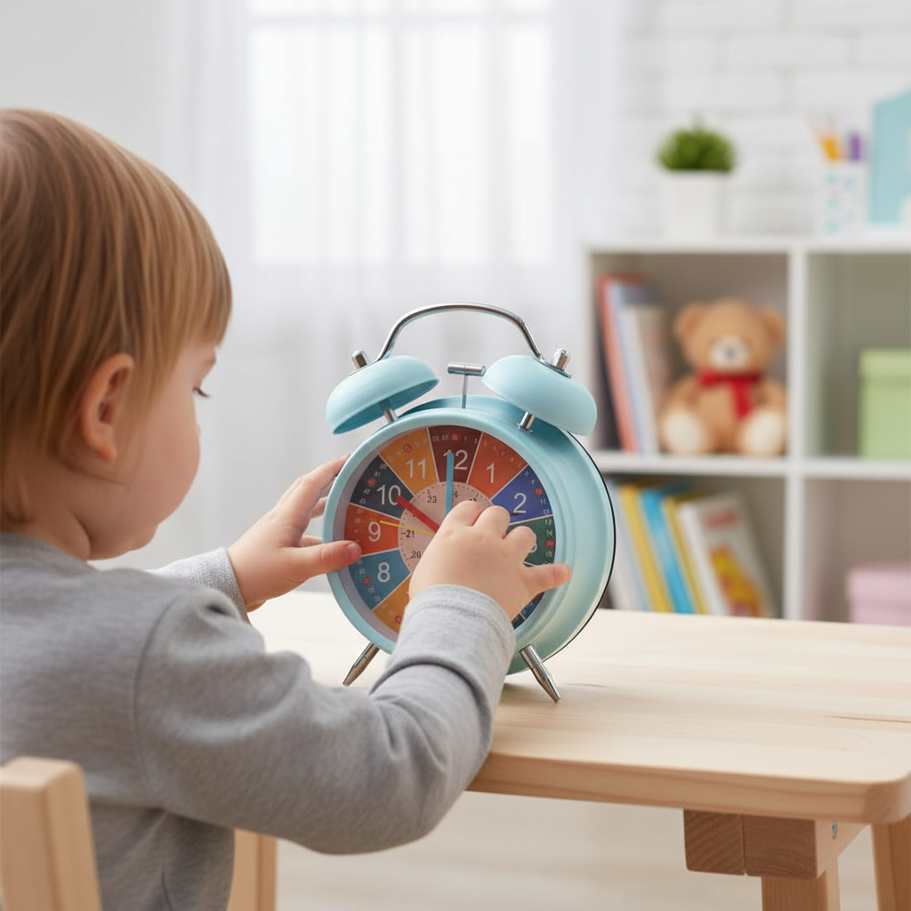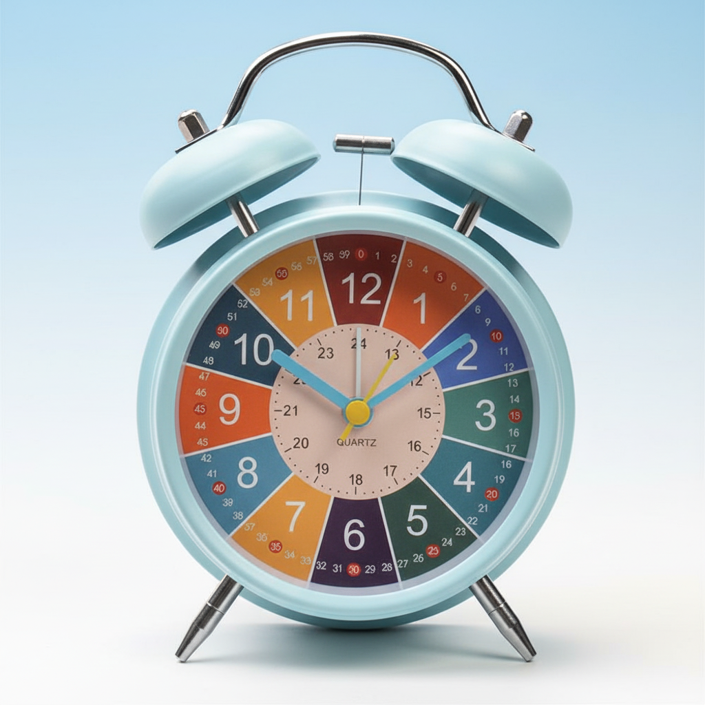 這款兒童早教時鐘採用天空藍色系,色彩柔和,能有效舒緩孩子的情緒,營造安靜的睡眠氛圍。清晰的數字刻度盤面設計,讓孩子輕鬆學習辨識時間,從小培養良好的時間觀念。雙鈴設計,鬧鈴聲響亮,能有效喚醒熟睡中的孩子,告別賴床的壞習慣。靜音掃描機芯,運轉時安靜無聲,不會影響孩子的睡眠品質。可愛的造型設計,不僅是實用的時鐘,也是房間裡的裝飾品,增添童趣。
