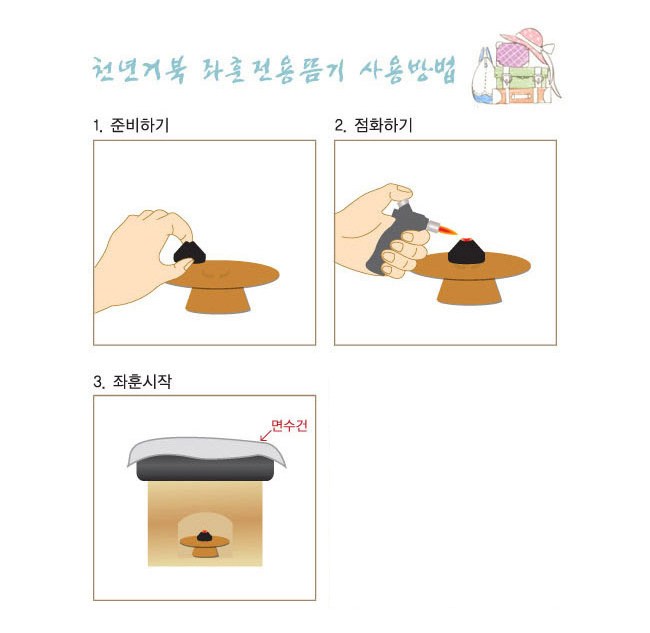 | 消費者使用前應詳閱醫療器材說明書 | 第一的。如果使用過程中變熱,請移動臀部並改變姿勢。或者,使用淺棉毛巾。第二。如果使用一般的容器而不是專用的艾灸機,熱量會很高,並且會損壞艾灸機。第三。使用千年龜喬根艾灸機、王艾灸機的無須單獨購買艾灸器。您所要做的就是購買“坐下的外國人”和“jwahun-tteul-bong”。但打坐時一定要打開艾灸機的蓋子。 (使用超級乾式扁灸機或王艾灸機時) 四.為了減少熱量損失,請使用坐浴專用的裙子。第五。點燃艾條後可以立即使用,但也可以將艾條放在陽台或窗戶附近約5分鐘以除去煙霧後使用。第六。請務必在通風良好的空間使用。第七。請勿在進食後或懷孕期間立即使用。第八。如果使用後立即丟棄骨灰,請將其丟棄在廁所或下水道。 (防火)九.使用時請注意不要讓兒童拉手。第十。請勿將下灸器倒置使用。 (注意圖片) | ||