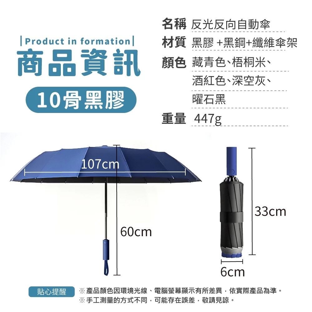 - 反向收傘設計,避免弄濕衣物與地面,保持乾爽體驗。