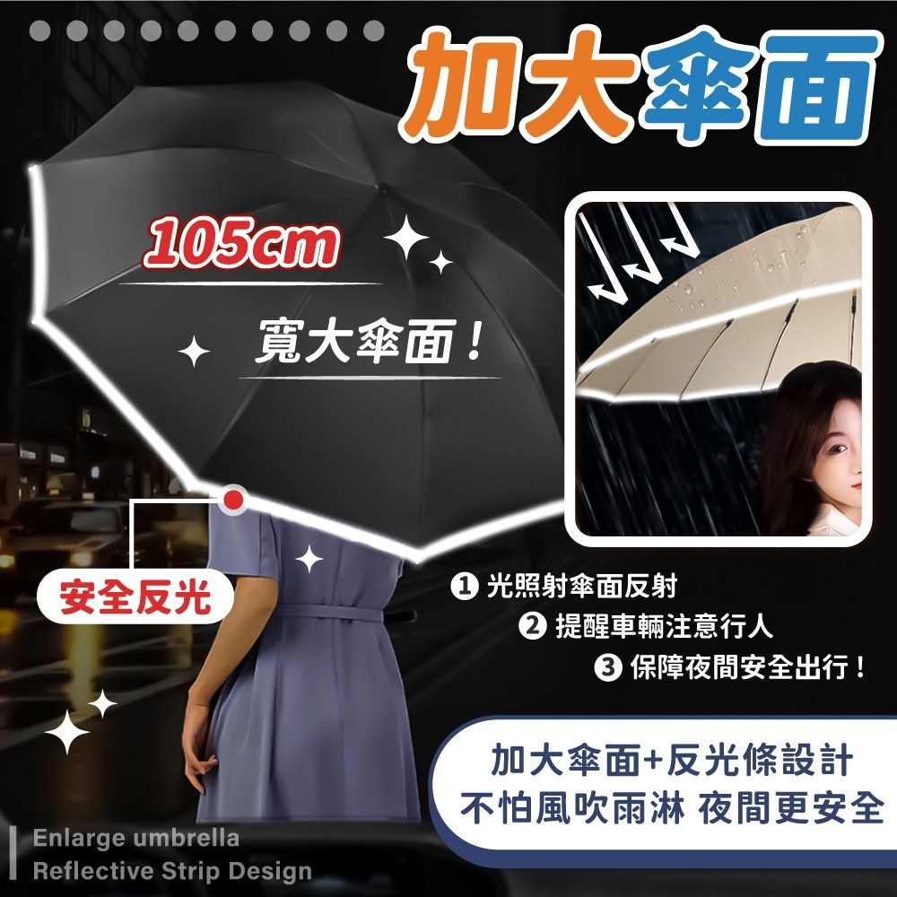 - 十骨傘架結構,堅固耐用抗強風,守護您的安全。
