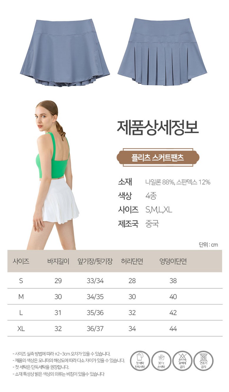 可愛少女高爾夫網球百褶裙兩件式內搭褲裙 4色 4size