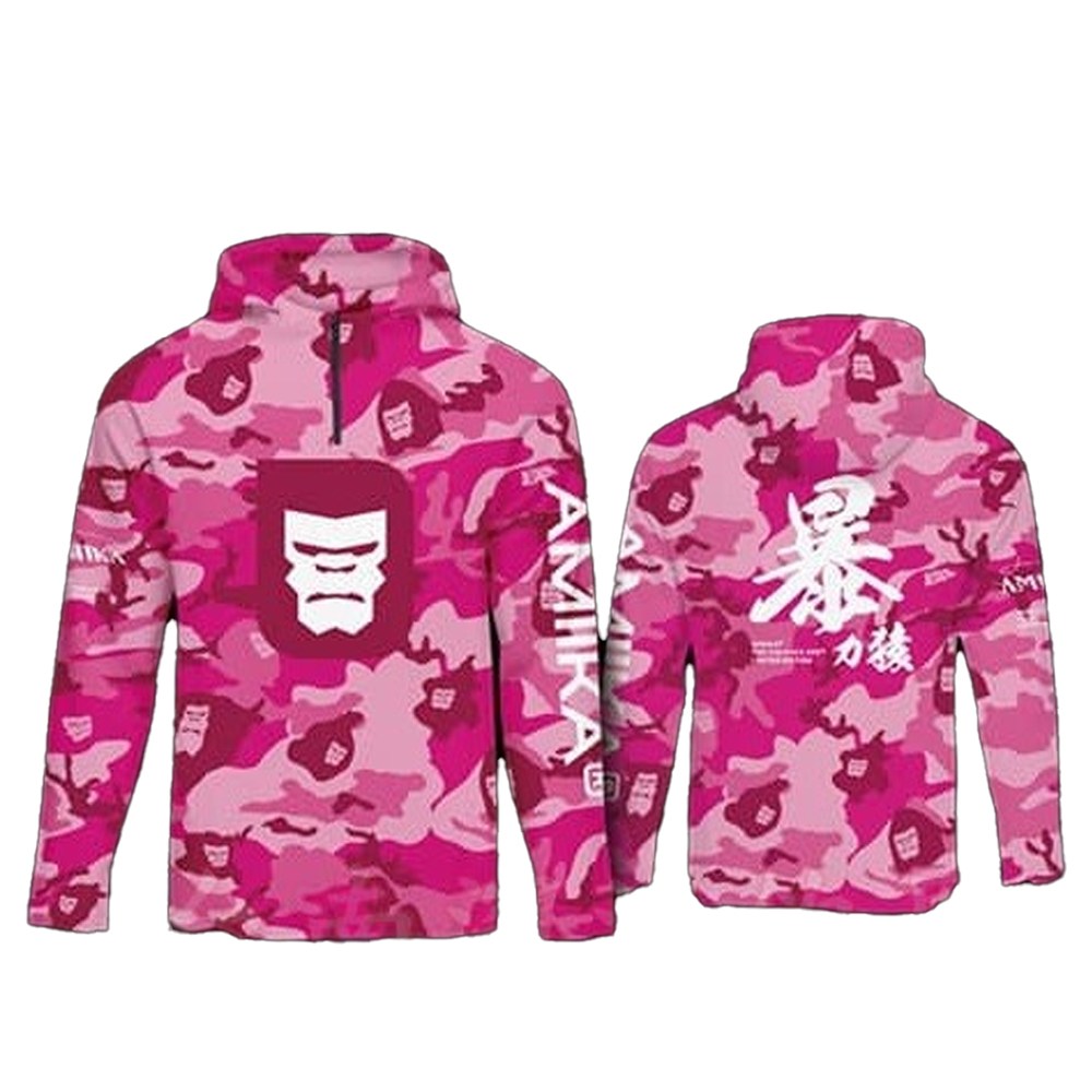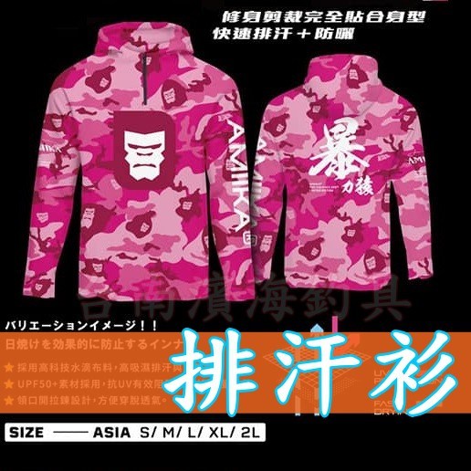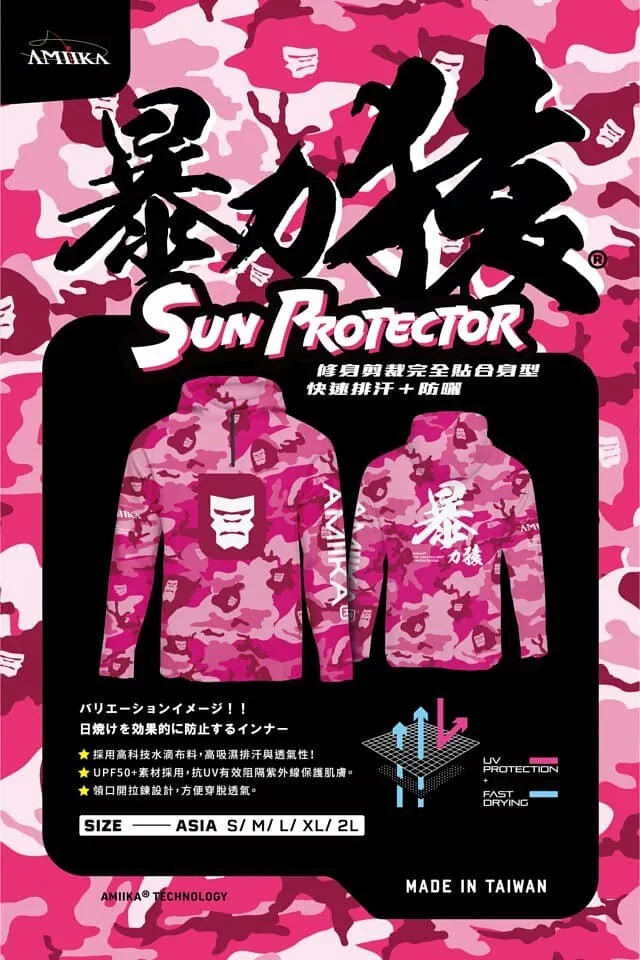Amika暴力猿長袖防曬衣,台灣製造,品質保證。採用UPF50+防曬材質,有效阻擋紫外線,保護您的肌膚免受曬傷。高科技排汗布料,快速吸濕排汗,保持乾爽舒適。粉騷迷彩設計,時尚有型,讓您在釣魚時也能展現個人風格。適合各種戶外活動,是您釣魚、登山、露營的最佳選擇。