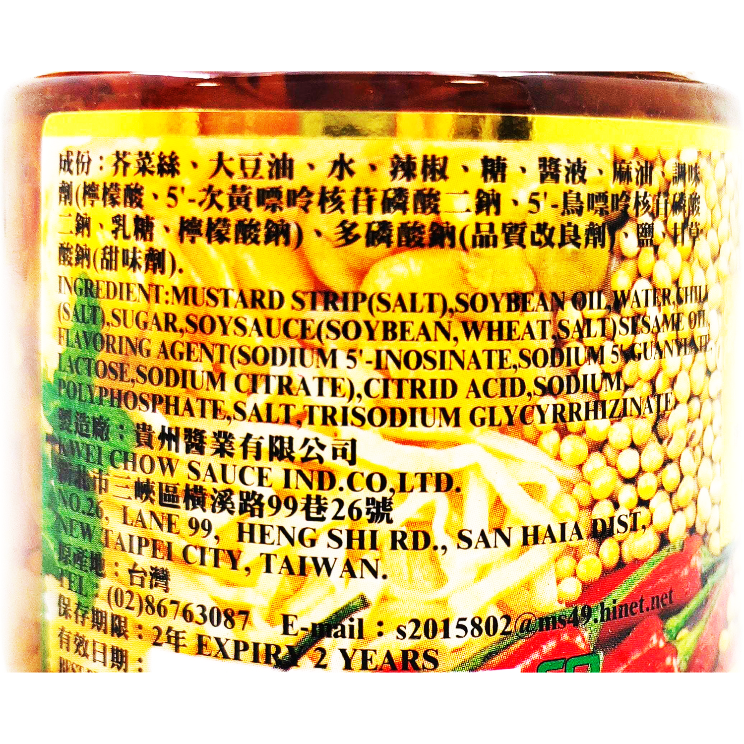 貴州鮮辣榨菜,精選優質芥菜,搭配香辣辣椒油,口感鮮脆爽口,香辣夠味。採用傳統工藝醃製,不含防腐劑,讓您吃得安心又健康。無論是搭配米飯、麵條,還是作為開胃小菜,都能為您的餐桌增添風味。每罐200克,份量十足,是您居家常備的美味佳餚。台灣製造,品質保證,讓您隨時享受道地的台灣風味。