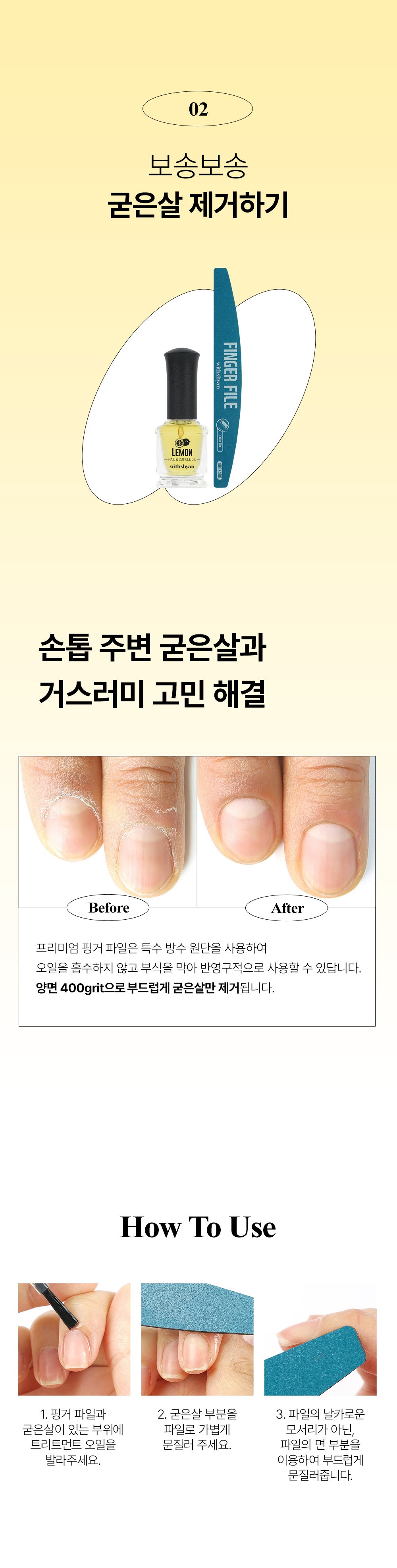- 內含指甲銼刀及護理油,可溫和去除死皮及老繭,讓指甲恢復柔嫩光澤。