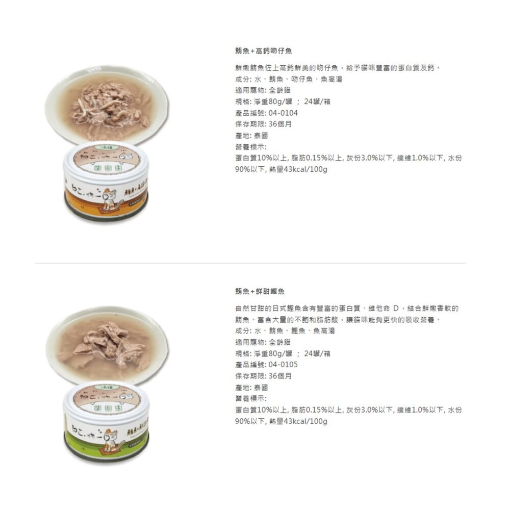 成份:水、鮪魚、吻仔魚、魚高湯