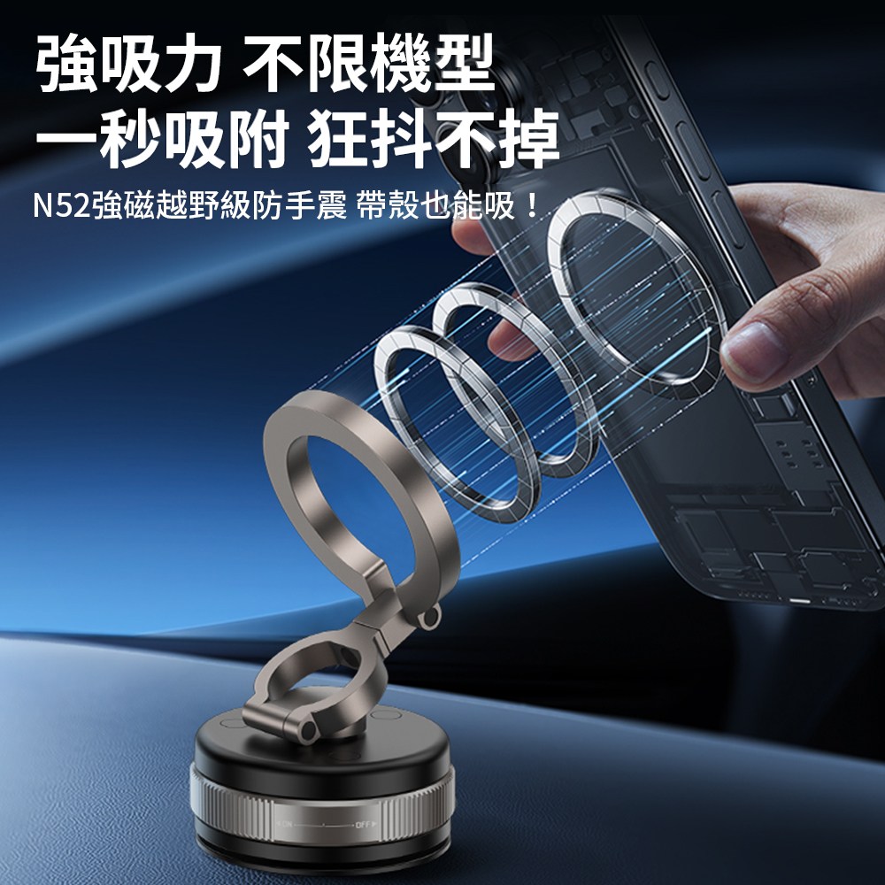這款吸盤磁性手機支架D1X,採用真空吸盤設計,能牢固吸附於各種表面,提供穩定的支撐。磁性設計讓手機輕鬆吸附,單手操作更方便,讓您在開車時也能安全導航。支架可360度旋轉,多角度調整,無論橫向或縱向,都能滿足您的需求。黑色外觀簡約時尚,與各種車內裝飾風格完美融合,提升車內質感。安裝簡單快捷,無需任何工具,輕鬆固定於儀表板或擋風玻璃上,方便又省時。