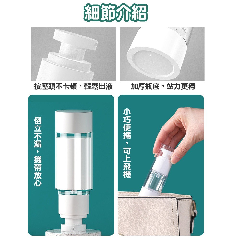 - 真空設計有效隔離空氣,保持化妝品的新鮮度與品質,讓您每次使用都像全新開封。