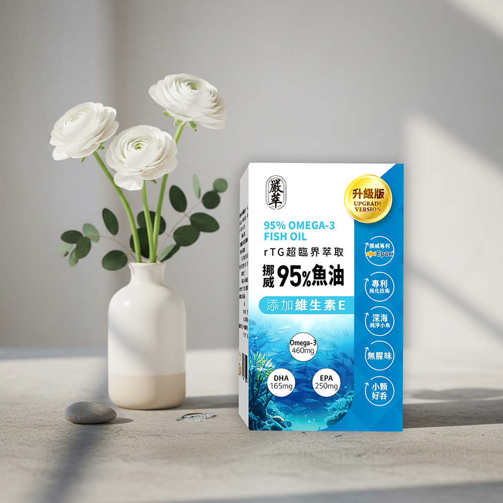 - 嚴萃rTG魚油,小分子好吸收,每日輕鬆補充Omega-3,維持思緒清晰。
