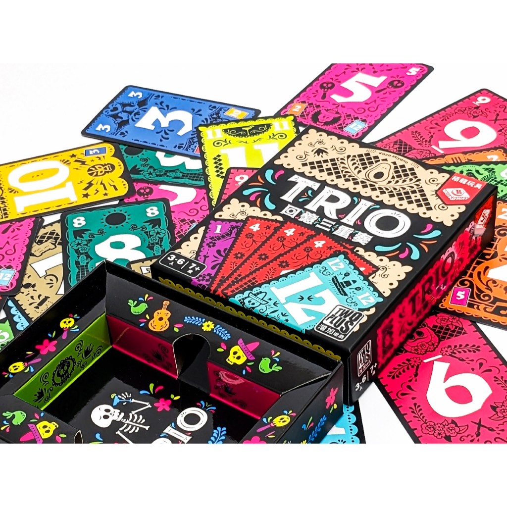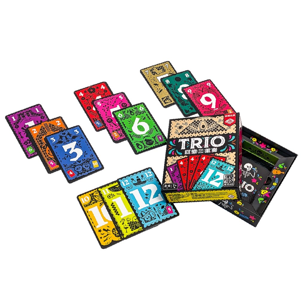 「回憶三重奏 trio 繁體中文版」是一款適合7歲以上,3至6人同樂的數字牌卡遊戲。遊戲包含36張數字牌,遊玩時間約15分鐘,考驗玩家的記憶力與策略。遊戲設計風格獨特,牌面設計充滿墨西哥風格的元素,色彩鮮明活潑,增添遊戲的趣味性。透過尋找相同數字的三張牌,訓練記憶力,增進與家人朋友間的互動,讓歡樂的回憶更加深刻。快來挑戰你的記憶力,看看誰能最先找出關鍵的三重奏,成為記憶大師!