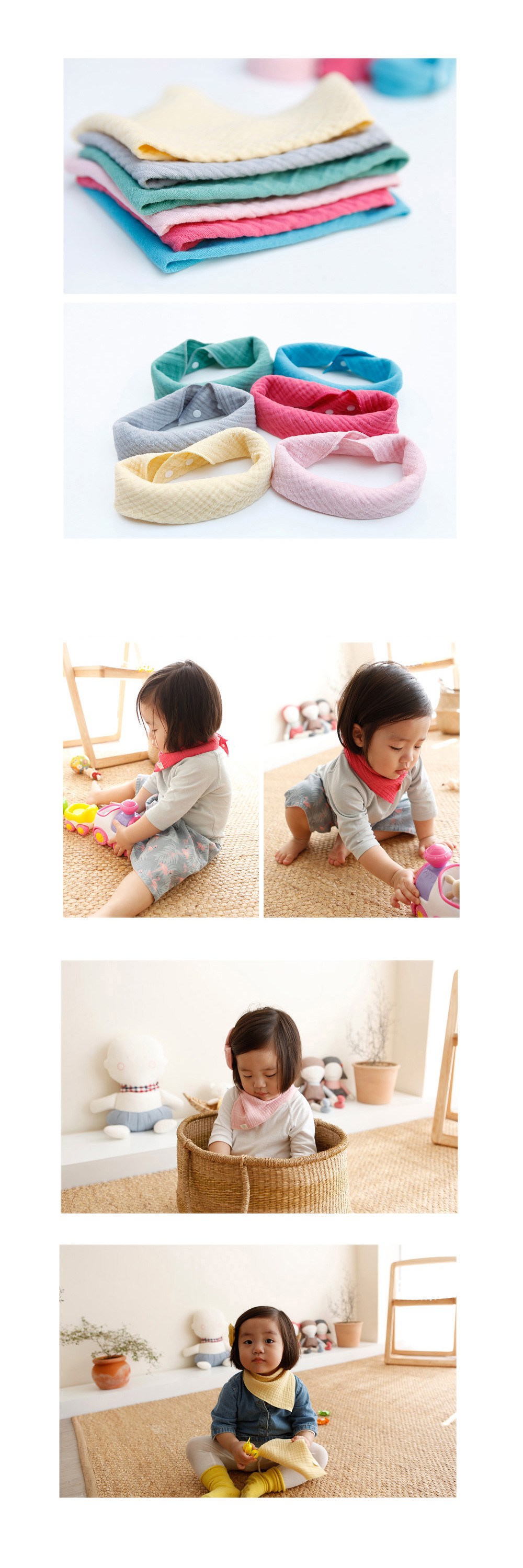 - 雙層綿紗材質,觸感輕柔呵護寶寶嬌嫩肌膚,讓寶寶隨時保持舒適乾爽。