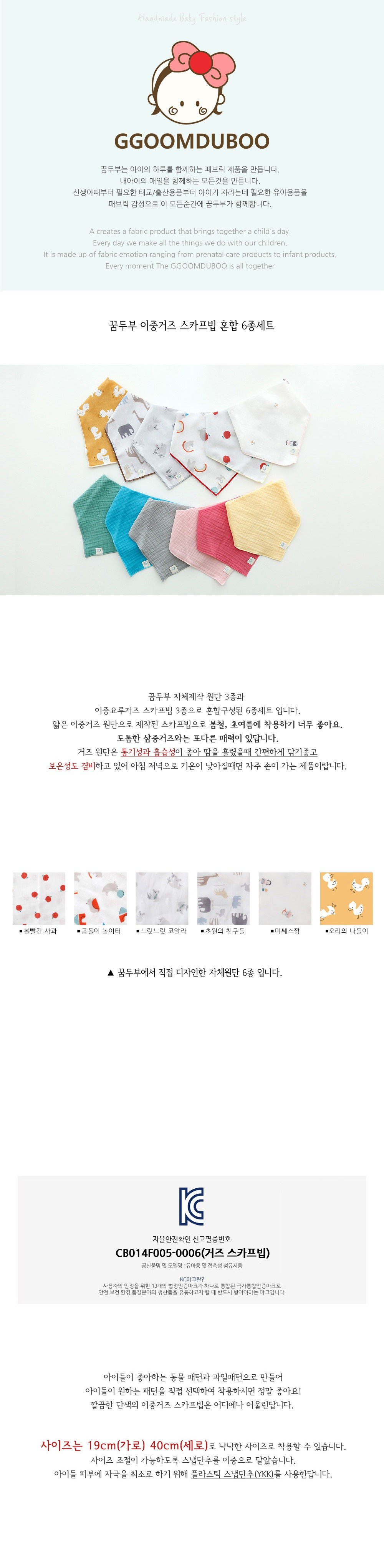 Ggoomduboo雙層綿紗圍兜採用柔軟的雙層紗布製成,透氣性與吸濕性俱佳,呵護寶寶的嬌嫩肌膚。多種可愛的動物和水果圖案,讓寶寶每天都能開心地選擇自己喜歡的款式。此款圍兜具有雙層暗扣設計,方便調整尺寸,確保穿戴舒適。無論是搭配日常服裝,或是外出使用,都能讓寶寶保持乾淨與時尚。韓國製造,讓您使用。