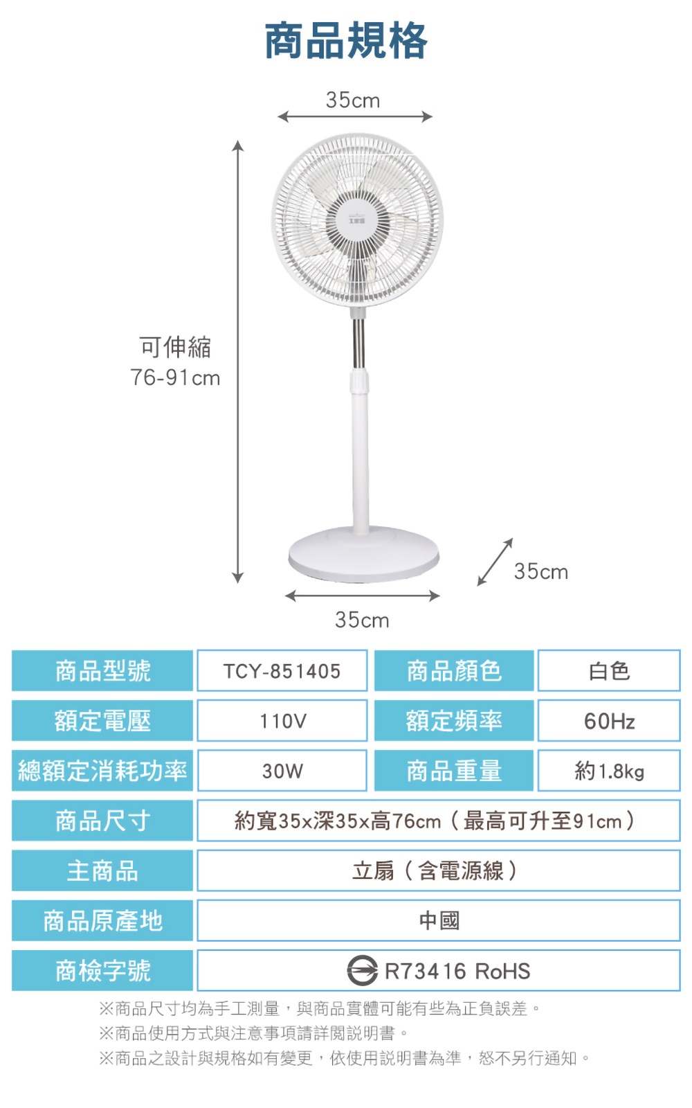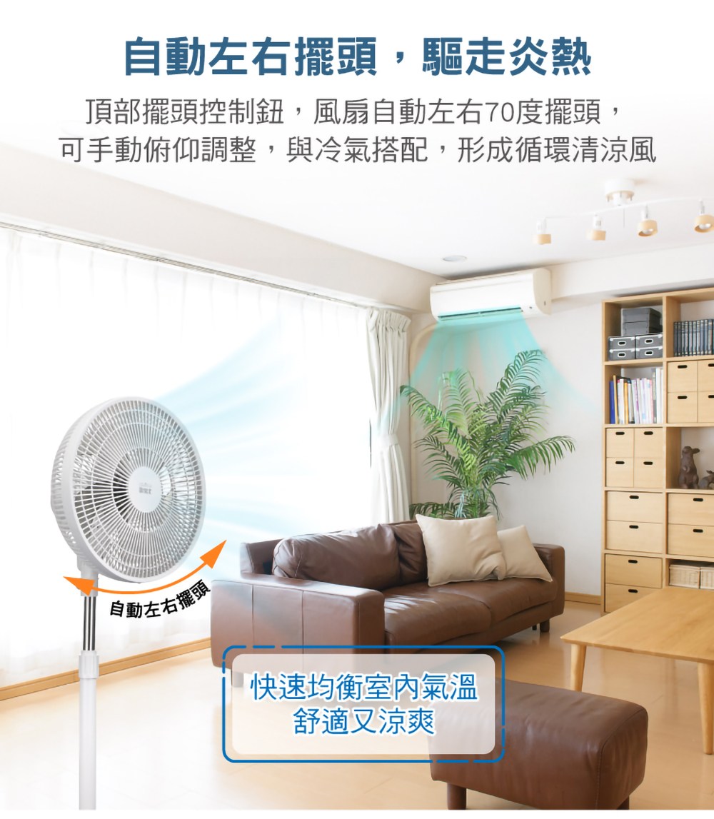 - - 14吋扇葉設計,帶來廣闊的送風範圍,讓整個空間都能感受到涼意,舒適宜人。
