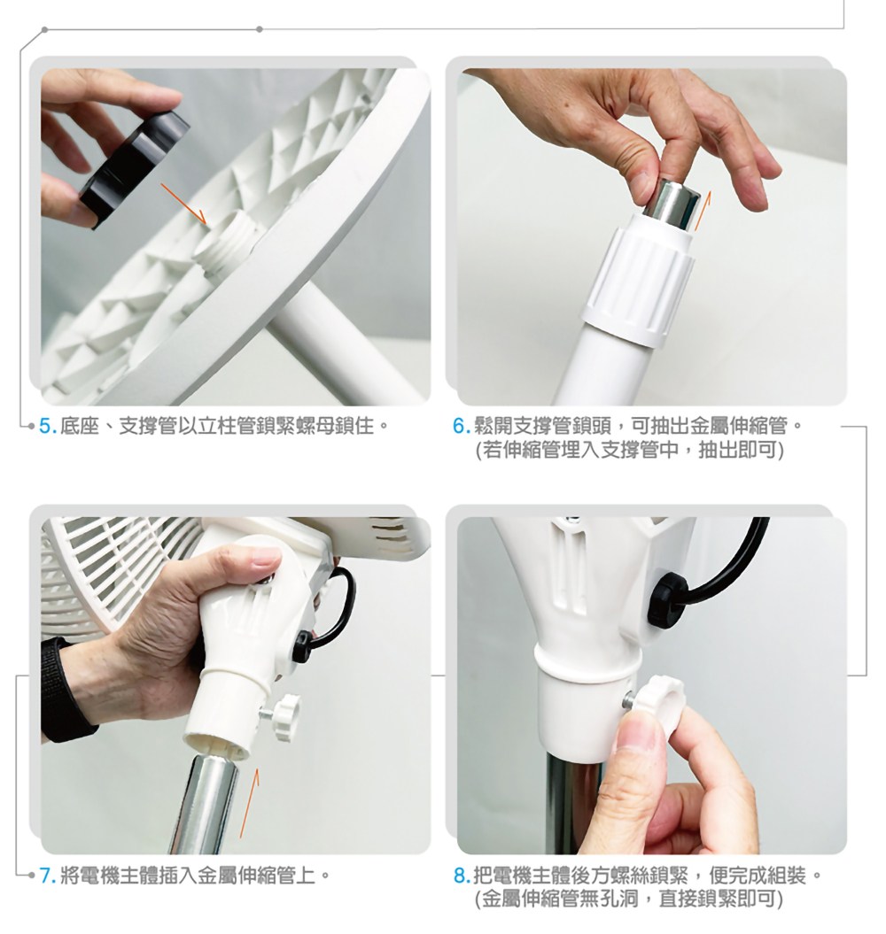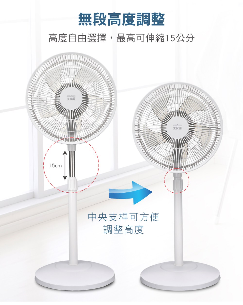 - - 可調整高度設計,依照個人需求調整風扇高度,無論坐臥都能享受最適切的涼風。