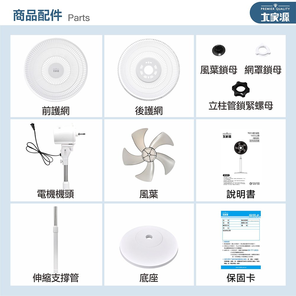 大家源 14 吋立扇 TCY-851405,為您帶來涼爽舒適的夏日體驗。這款立扇採用簡約配色,視覺上清新舒爽,能融入各種居家風格。三段風速設計,可依需求調整,操作簡單方便,無需彎腰。扇葉網罩易拆卸,方便清潔,確保使用衛生。此外,立扇高度可自由調整,最高可伸縮 15 公分,滿足不同使用情境。自動左右擺頭功能,快速均勻室內氣溫,讓您享受舒適涼爽的空間。