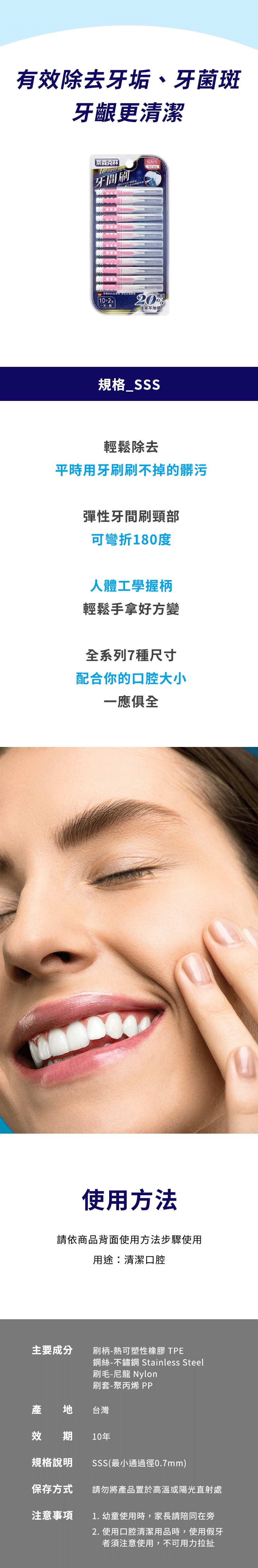 - 輕鬆滑入牙縫,0.7mm刷頭設計,清潔難以觸及的牙齒間隙,保持口腔清新。