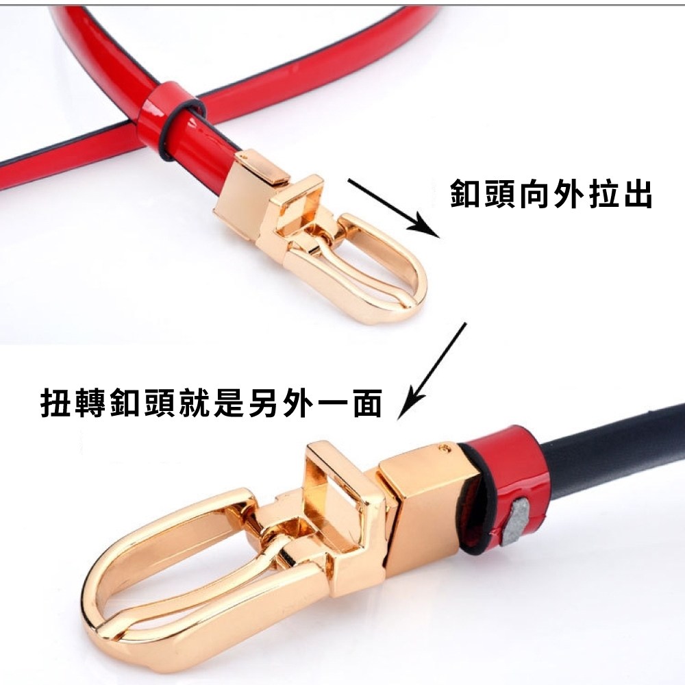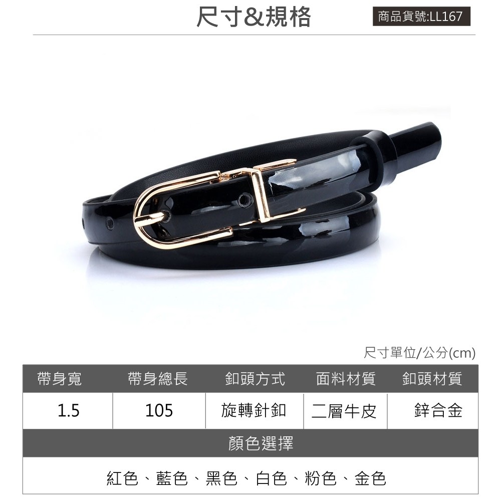 女款真皮漆面牛皮帶/旋轉合金針扣腰帶 LL167