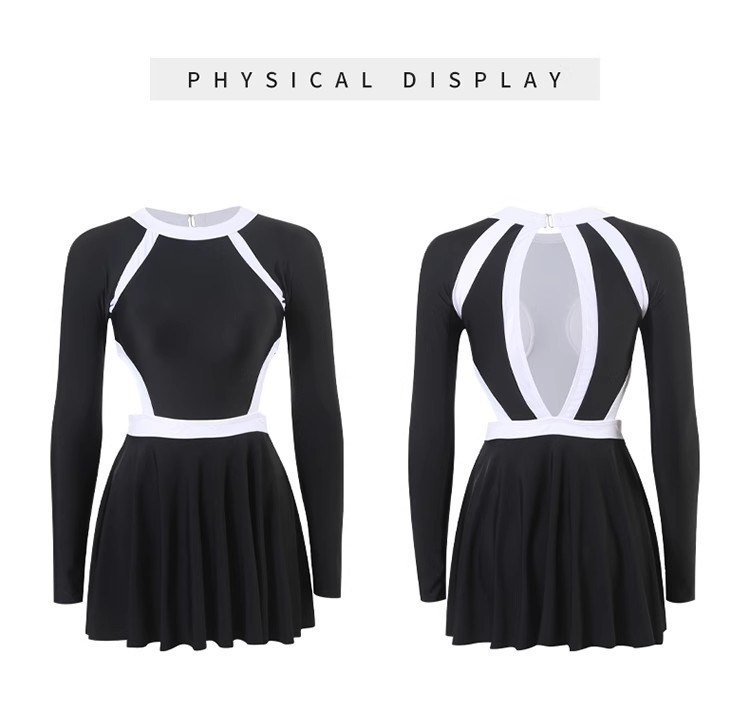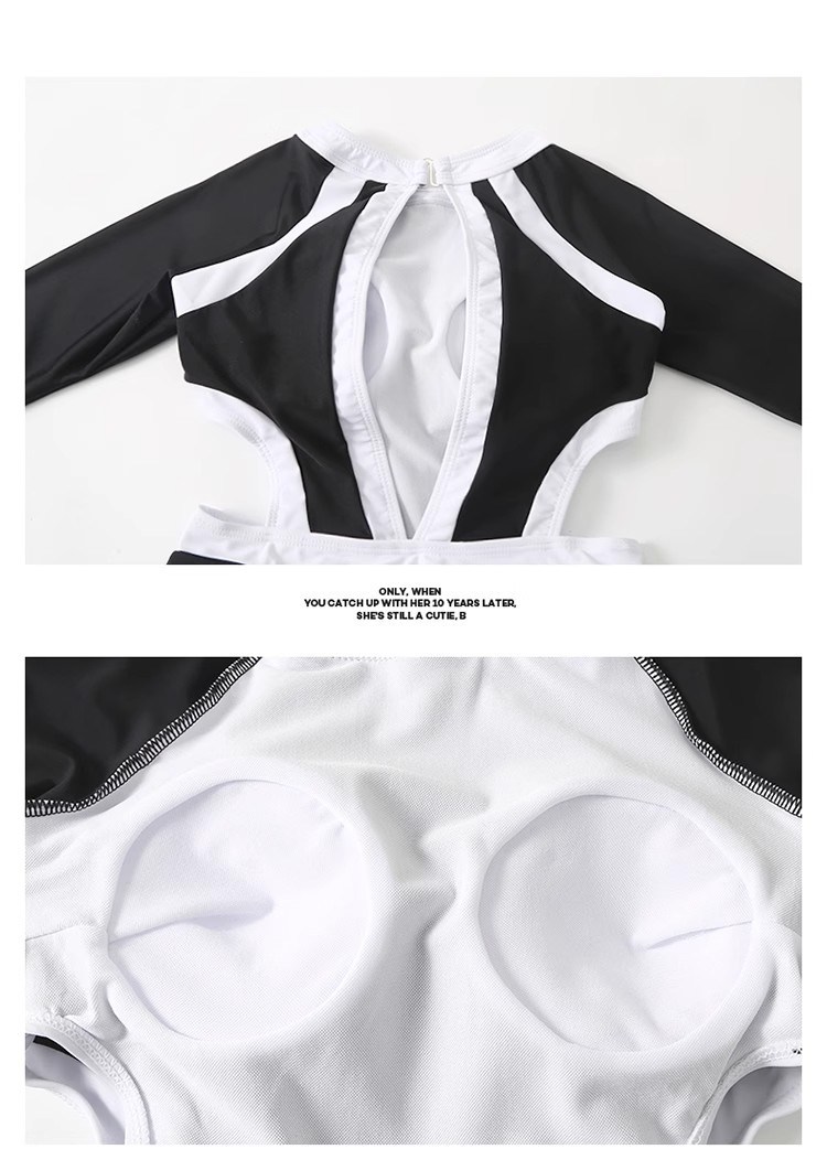 女款長袖挖背連體褲裙泳衣套裝
