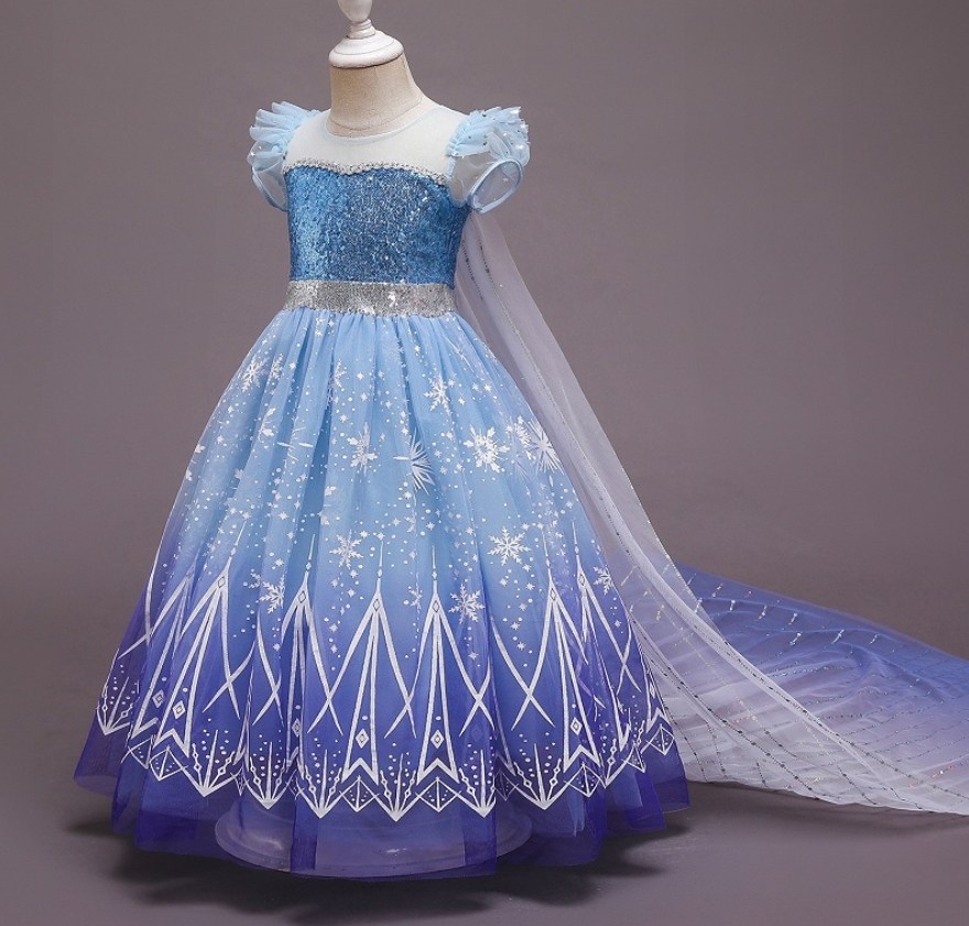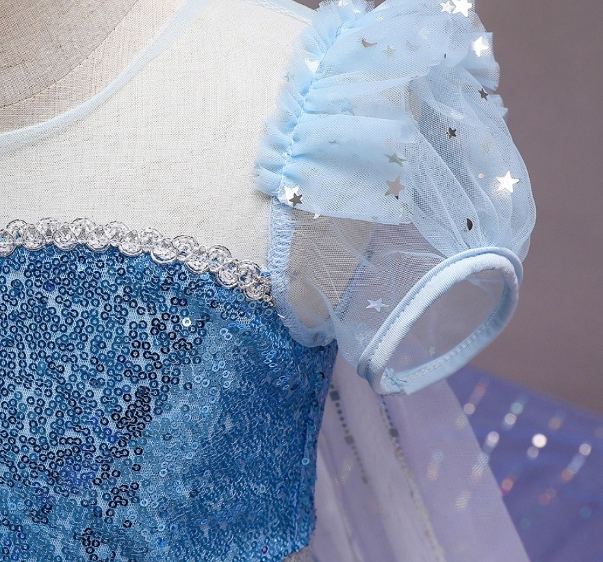 讓女孩們夢想成真,化身為美麗的冰雪女王!這款藍色雪花長洋裝,採用舒適的面料,搭配閃耀亮片點綴,呈現出夢幻般的雪花圖案,裙襬飄逸,仙氣十足,讓寶貝在派對或日常生活中都能成為全場矚目的焦點。