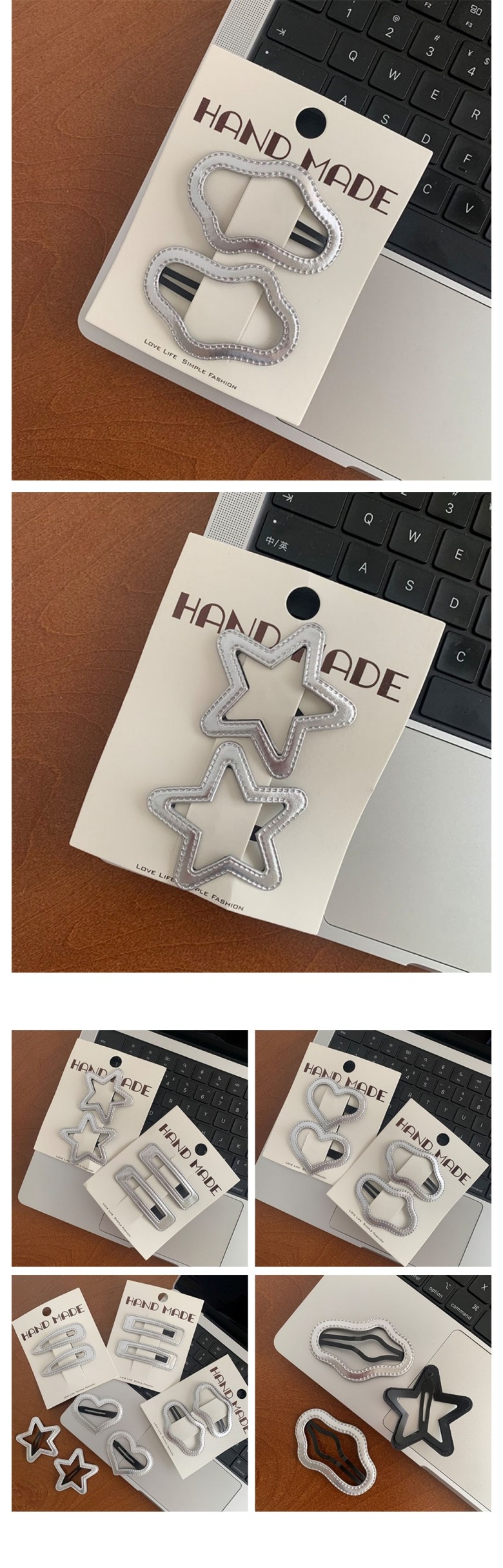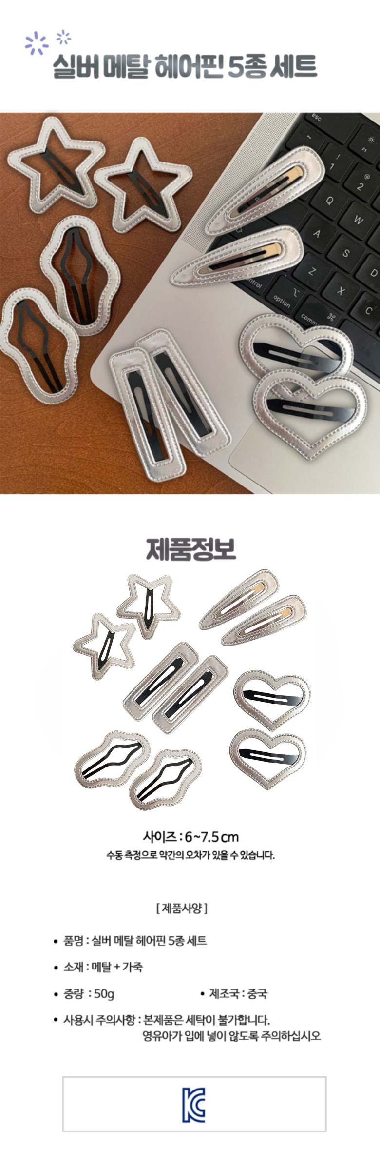 這款女孩金屬髮夾5件套,包含多種不同設計的髮夾,閃亮的銀色皮革材質,讓您的寶貝女兒在任何場合都能展現獨特魅力。每套包含5款設計,共10個髮夾,方便每日更換造型。尺寸約6~7.5cm,輕巧易於配戴,適合各年齡層的兒童。請注意本產品不可洗滌,並避免讓嬰幼兒放入口中。為您的孩子打造時尚可愛的造型,就從這款髮夾開始!