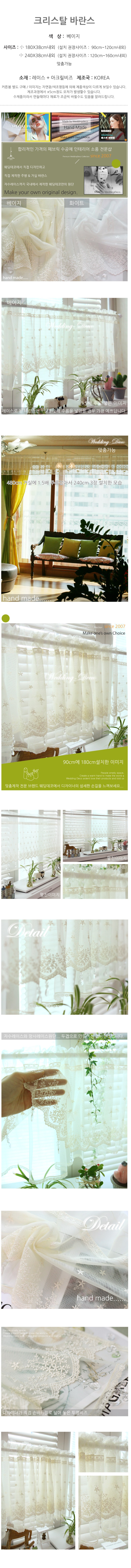 水晶流蘇窗簾短簾,為您的居家空間增添一抹典雅浪漫的氣息。這款短簾採用精緻的蕾絲面料,搭配閃耀的亞克力串珠,展現出優雅細膩的質感。小尺寸約180x38公分,適合安裝於90■120公分的窗戶;中尺寸約240x38公分,適合安裝於120■160公分的窗戶。另有客製化尺寸服務,滿足您不同的需求。本產品為韓國製造,品質優良,請注意,窗簾桿需另購。圖片顏色可能因拍攝光線或螢幕設定而略有差異,實際顏色以實品為準。手工製作,尺寸可能會有±5公分的誤差,敬請見諒。每批蕾絲花樣及材質可能略有不同,敬請以實際商品為準。