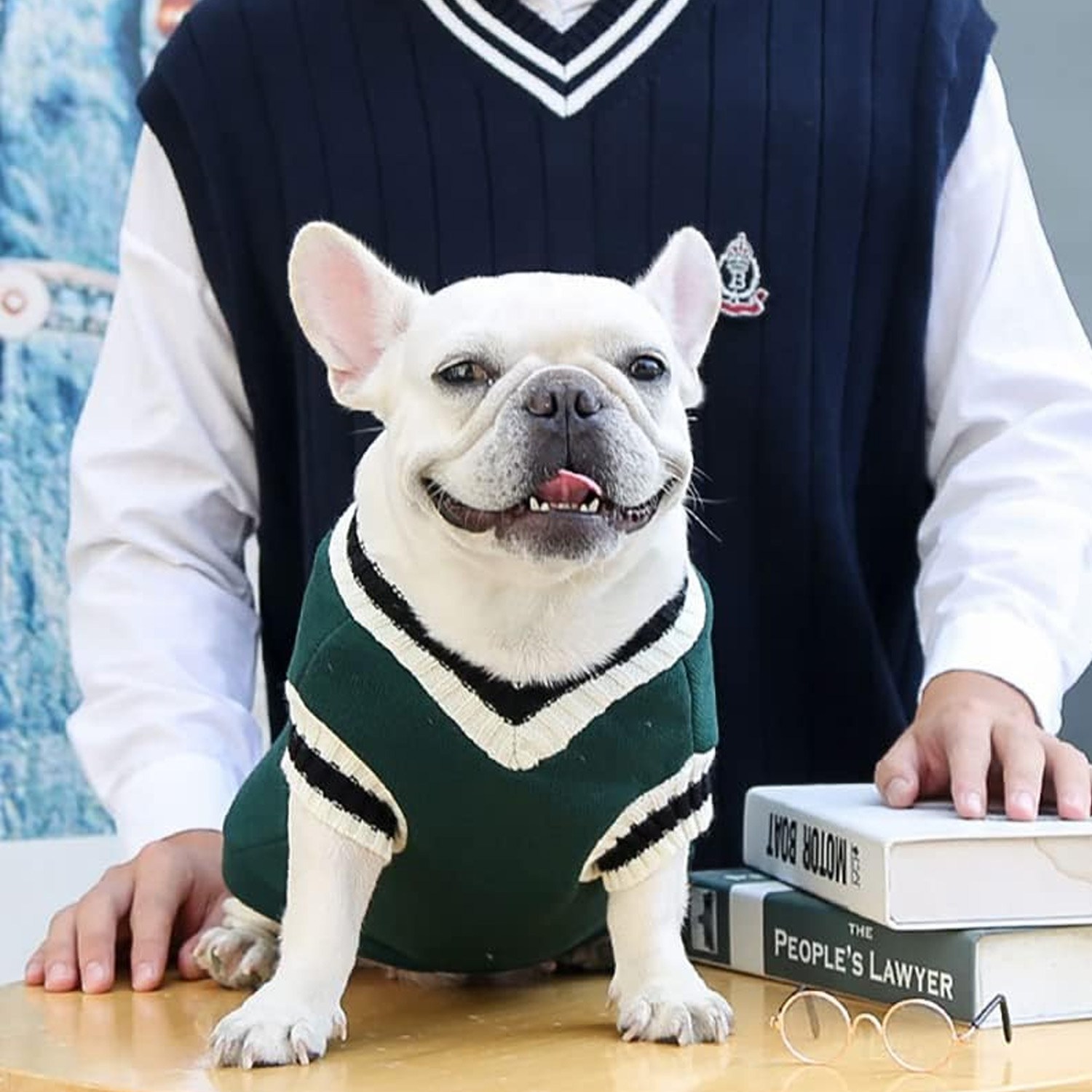這款學院風針織背心狗衣服,為您的愛犬打造時尚造型。採用柔軟舒適的紗線材質,提供絕佳的穿著體驗,讓您的寵物在任何場合都感到舒適自在。經典的學院風格設計,搭配精緻的徽章圖案,展現出獨特的品味與風格。綠色系的配色,更顯清新活力,讓您的愛犬成為眾人矚目的焦點。此款針織背心不僅保暖舒適,更兼具時尚美觀,是您為愛犬添購衣物的最佳選擇。