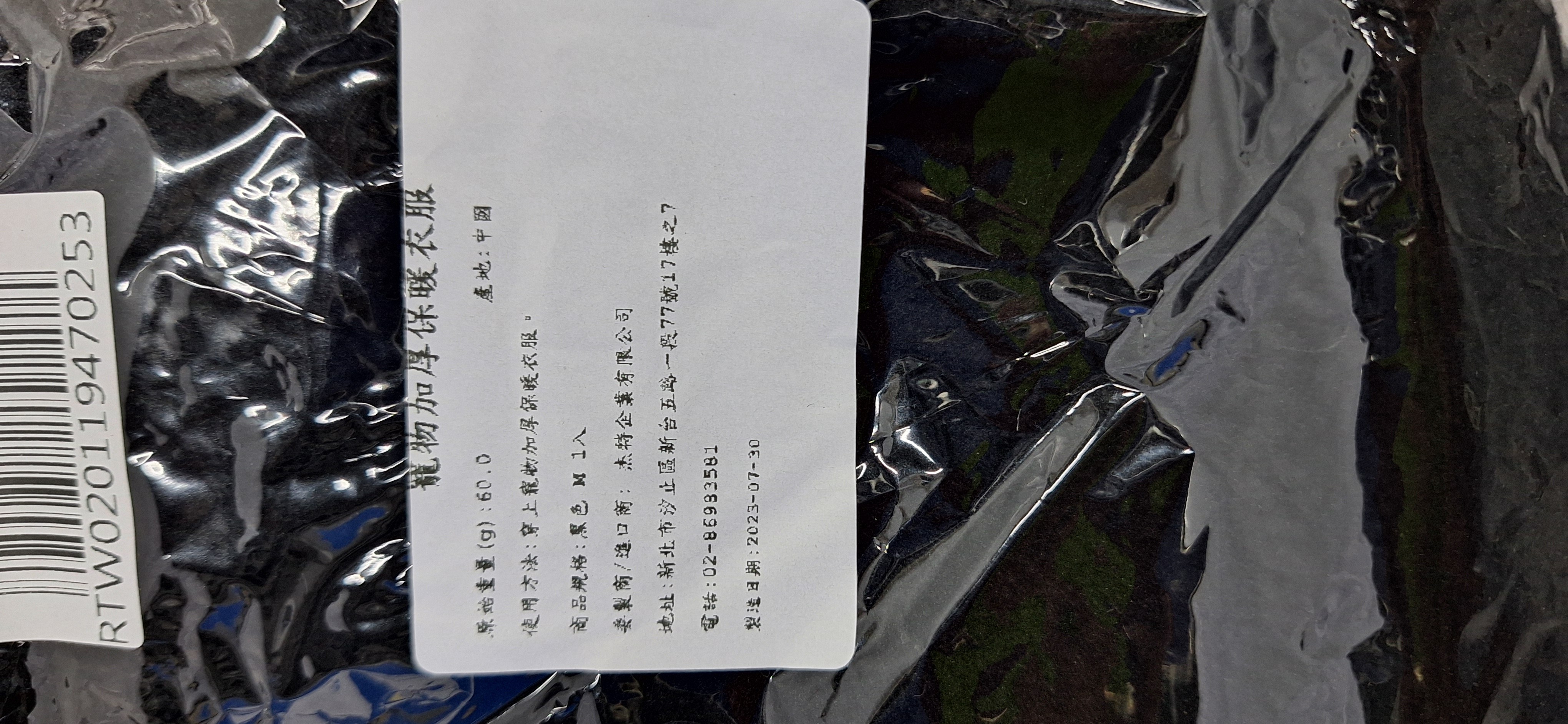 寵物加厚保暖衣服 60g, M, 黑色, 1件