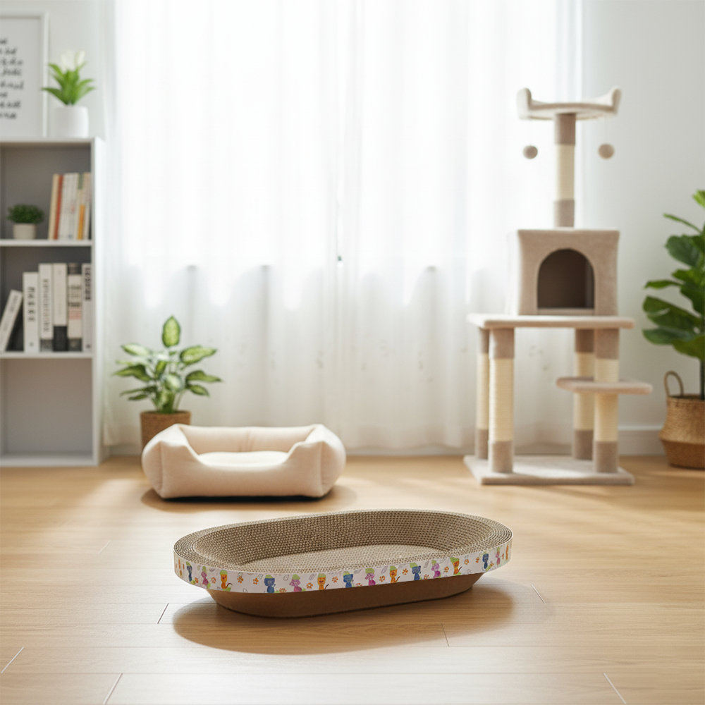 - 加厚瓦楞紙製成,耐磨耐抓,讓貓咪盡情享受磨爪的樂趣,釋放壓力。
