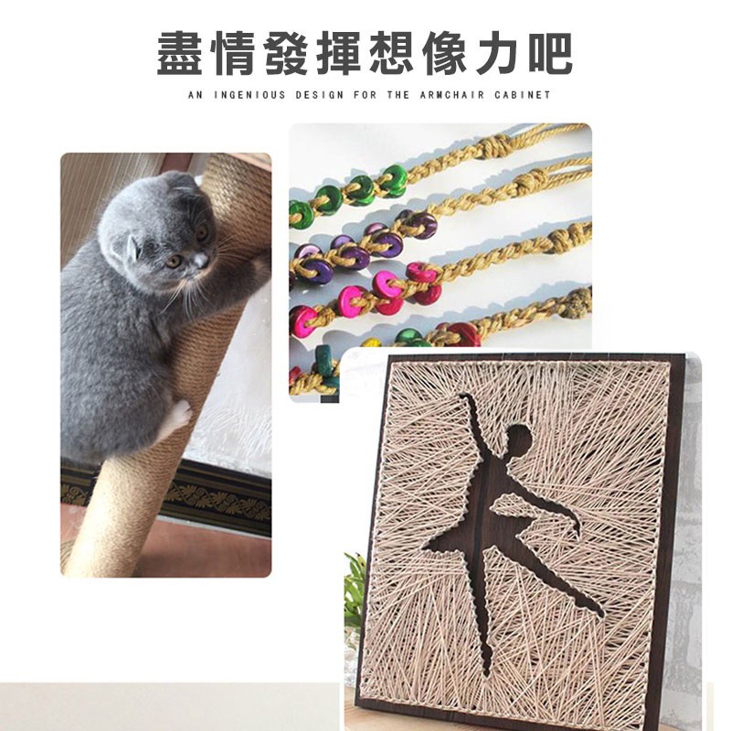 寵物夢工廠 DIY 黃麻繩,讓您親手為愛貓打造獨一無二的玩樂天地!這款 4mm 粗、60 公尺長的黃麻繩,是製作貓抓板、貓爬架等貓咪用品的理想選擇,耐抓耐磨,讓貓咪盡情釋放天性。您可以將黃麻繩纏繞在家具、柱子上,或利用它製作各種造型的貓玩具,滿足貓咪的抓撓需求,同時保護您的家具免受損害。DIY 的樂趣不僅能增進您與愛貓的互動,更能打造出符合貓咪喜好的專屬空間。
