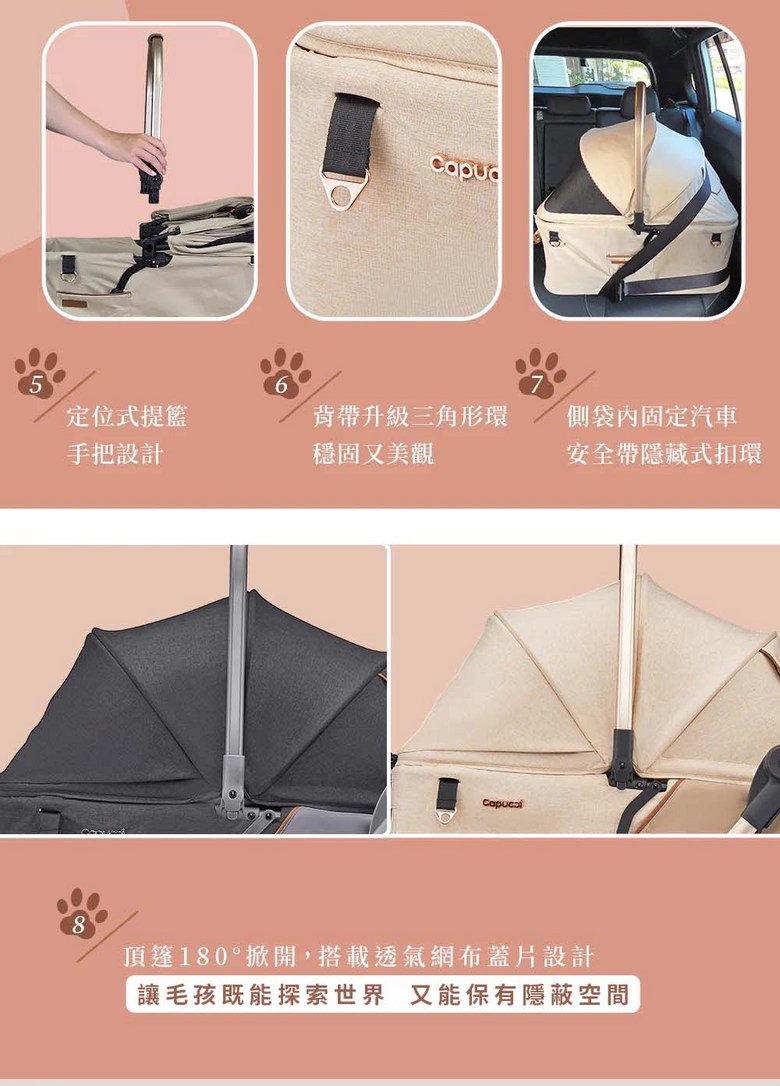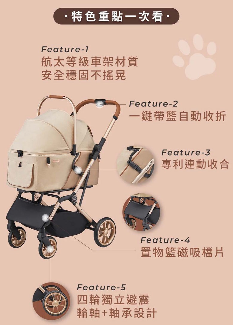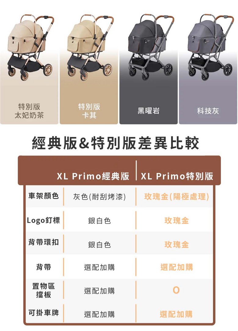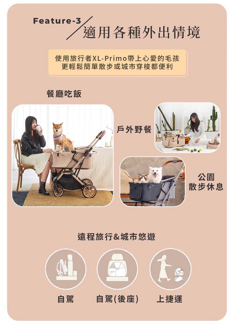 寵物推車旅行者XL Primo (特別款) - 加大空間,舒適透氣,安全穩定, 太妃奶茶