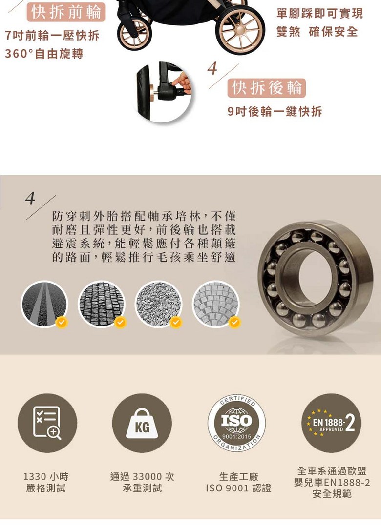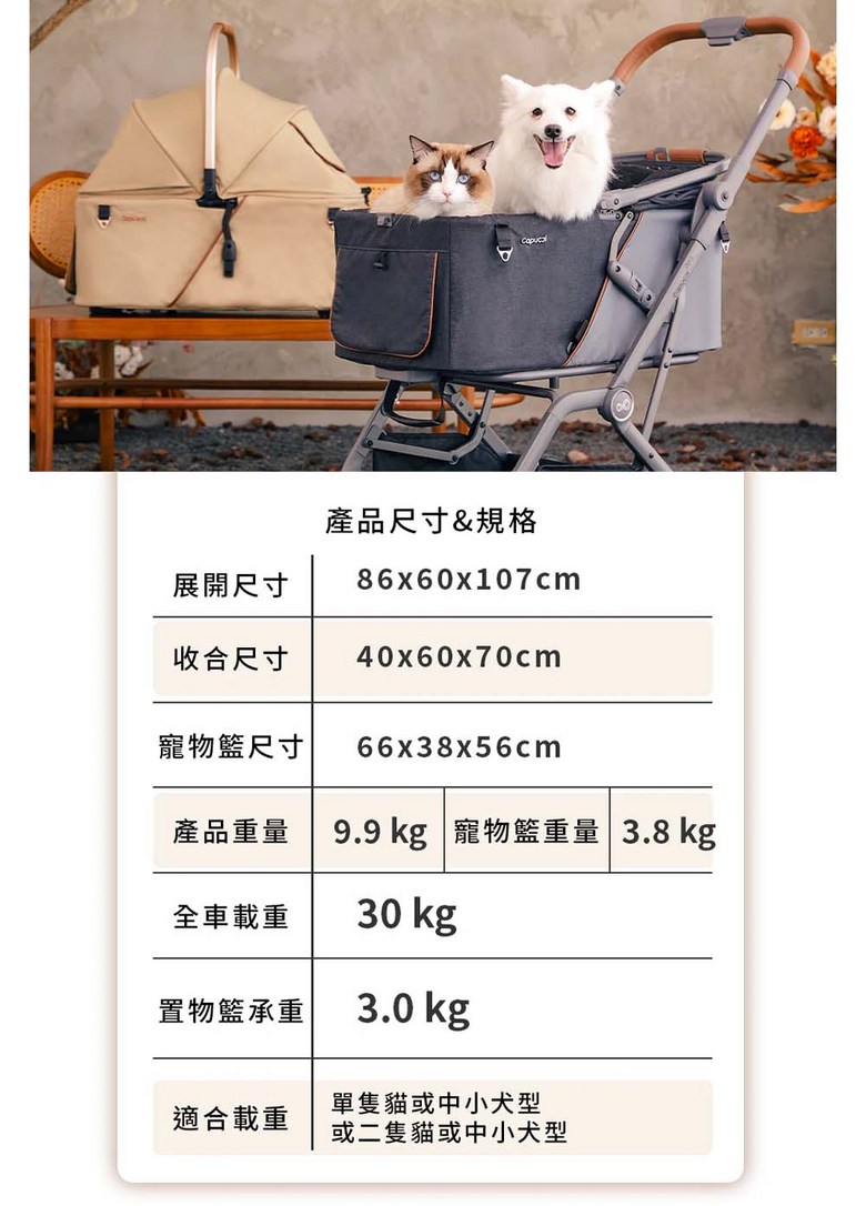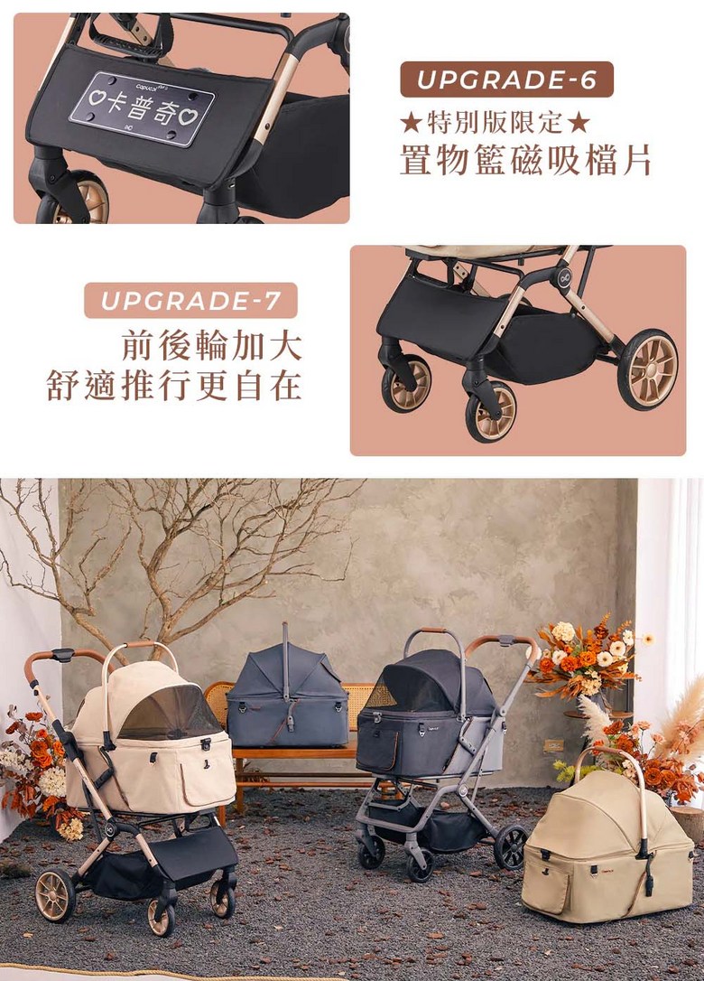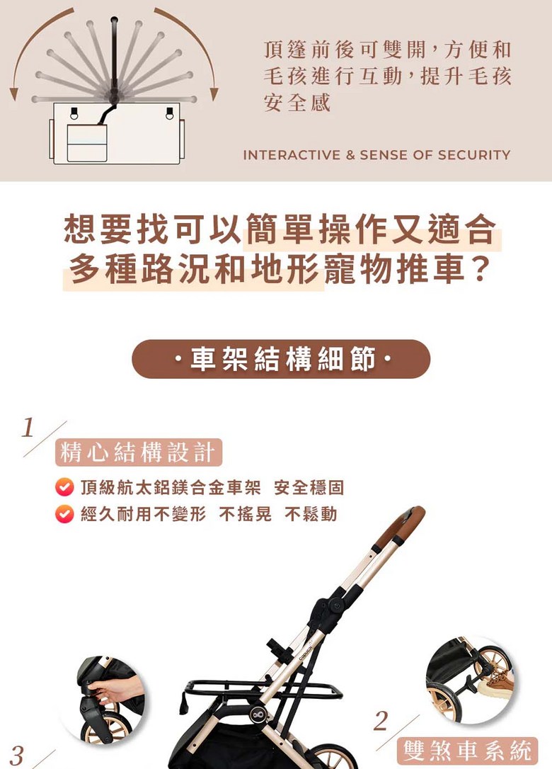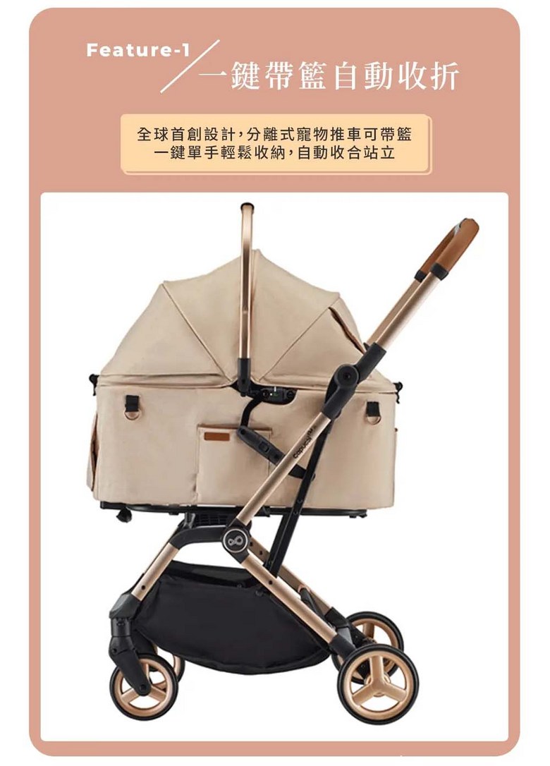 寵物推車旅行者XL Primo (特別款) - 加大空間,舒適透氣,安全穩定, 太妃奶茶