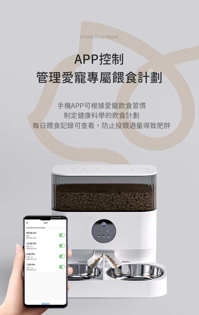 - 自動餵食功能: 可自動餵食