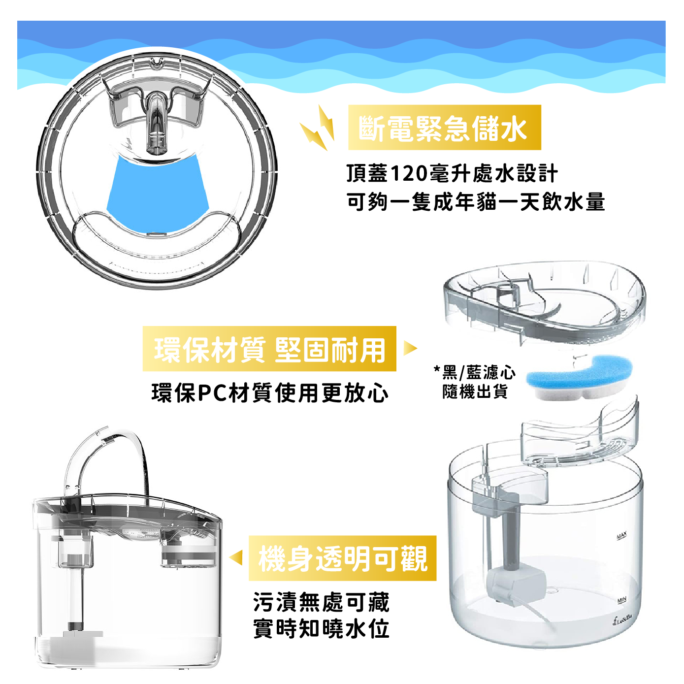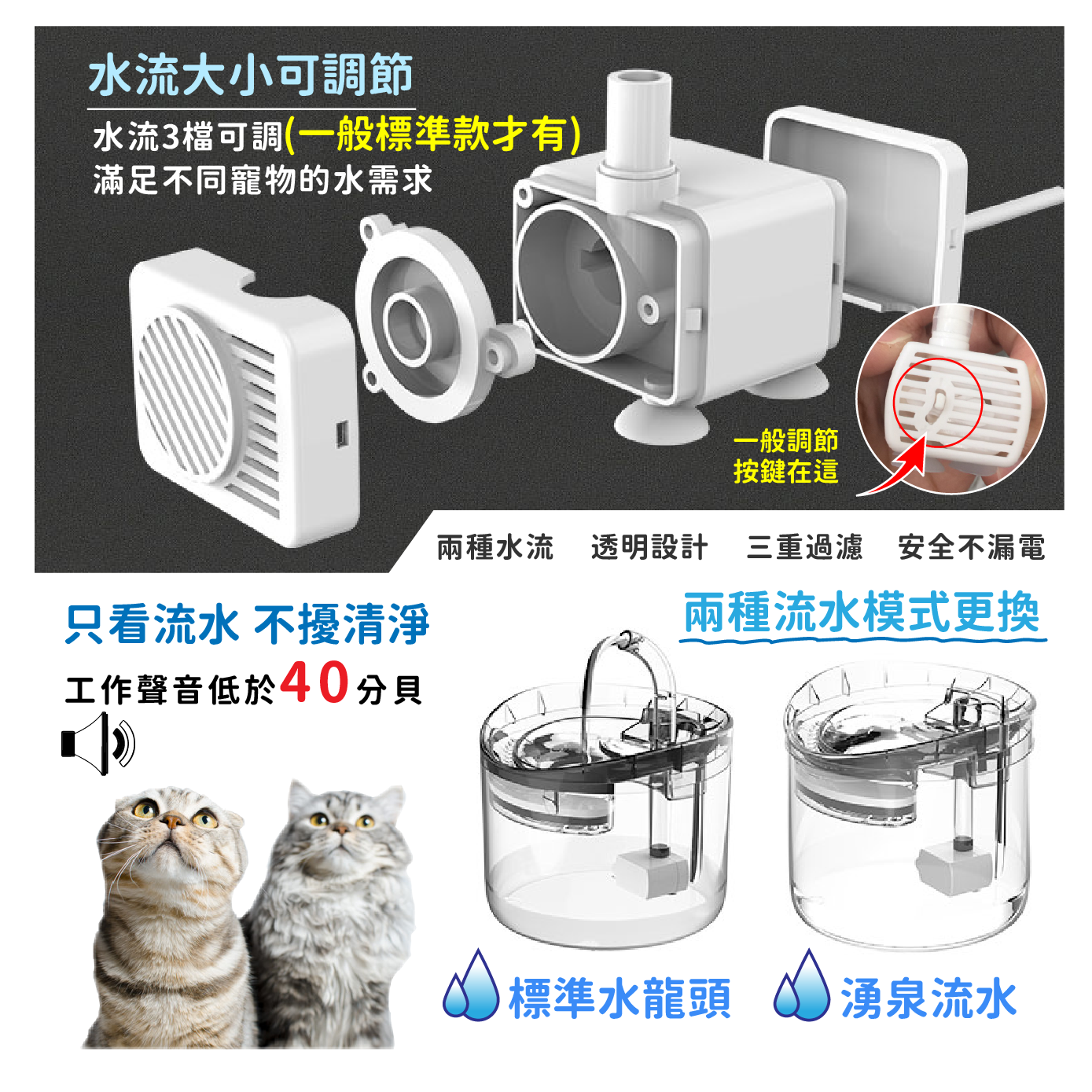 寵物飲水器,為您的愛寵提供源源不絕的潔淨飲水。透明設計方便觀察水位,確保寵物隨時有水可飲。提供兩種出水模式,滿足不同寵物的飲水喜好。三重過濾系統有效去除雜質,確保飲水安全衛生。靜音馬達設計,運作安靜不擾人,讓您的寵物享受寧靜的飲水體驗。