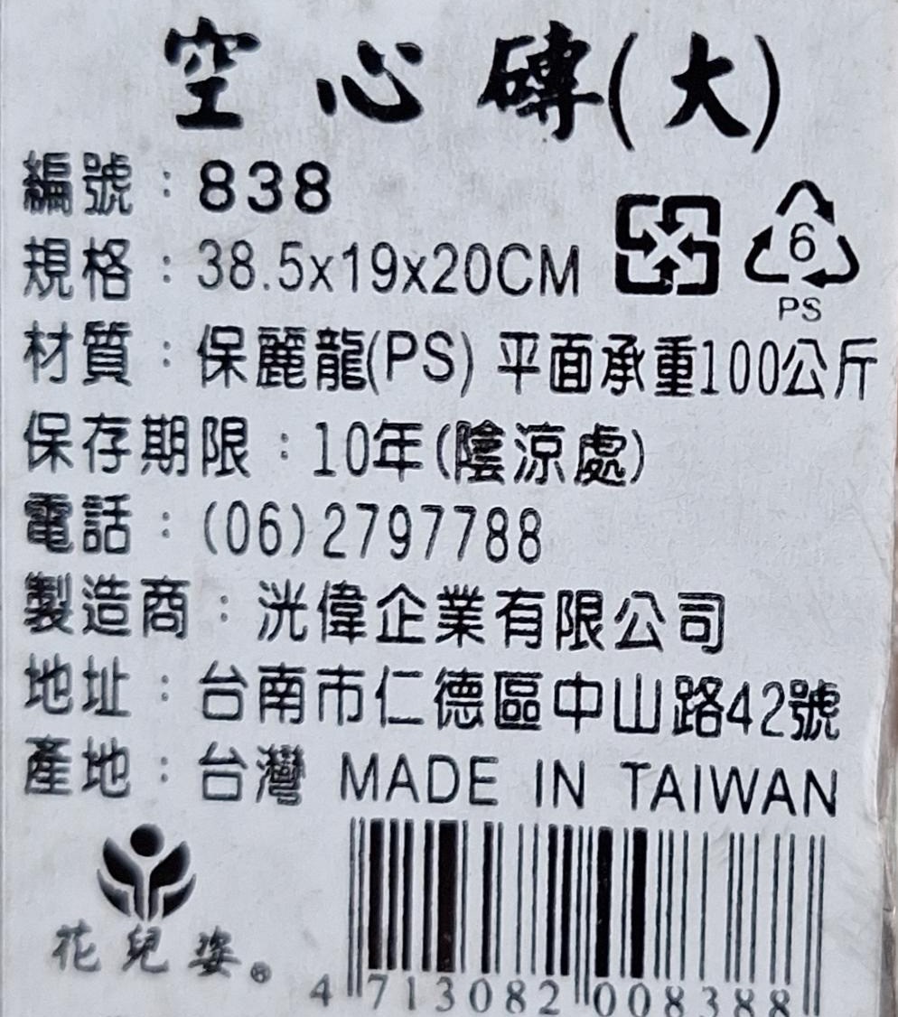 寶時捷大空心磚是您打造理想花園景觀的理想選擇。這款保麗龍磚尺寸為38.5 x 20 x 19公分,輕巧易搬運,讓您輕鬆堆疊出獨特的園藝造型。空心設計不僅減輕重量,還能促進植物根部透氣,營造更健康的生長環境。無論是花圃、盆栽底座,還是創意裝飾,都能為您的戶外空間增添藝術氣息。台灣製造,品質保證,讓您安心使用。
